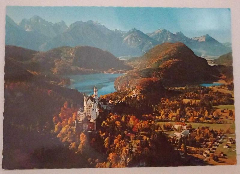 ŞEHİR KARTPOSTALI-ALMANYA/Neuschwanstein Şatosu TEPEDEN GÖRÜNTÜSÜ,ARKASI YAZILMAMIŞ, RENKLİ, 12 X 16 CM EBADINDA - 1950'LER, 1960'LAR, 1970'LER, 1980'LER