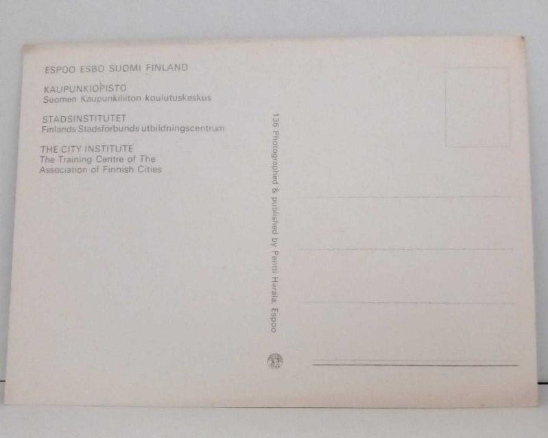 ŞEHİR KARTPOSTALI-FİNLANDİYA/ESPOO FİNLANDİYA ŞEHİRLERİ DERNEĞİ EĞİTİM MERKEZİ,ARKASI YAZILMAMIŞ, RENKLİ, 12 X 16 CM EBADINDA - 1950'LER, 1960'LAR, 1970'LER, 1980'LER, en son 8 ay önce güncellenmiştir.