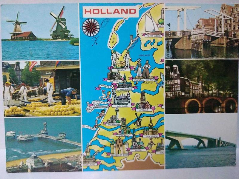 ŞEHİR KARTPOSTALI-HOLLANDA/TURİSTİK GEZİNTİ VE TARİHİ YERLERİN HARİTASI ÜLKE GÜZELLİKLERİ GÖRÜNTÜSÜ,ARKASINA YAZILMAMIŞ, RENKLİ, 11 X 15 CM EBADINDA-1950'LER, 1960'LAR, 1970'LER, 1980'LER, en son 8 ay önce güncellenmiştir.