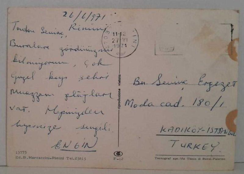 ŞEHİR KARTPOSTALI-İTALYA/RIMINI ŞEHİR GÖRÜNTÜLERİ DENİZ VE KUMSAL,ARKASI YAZILMIŞ, RENKLİ, 12 X 16 CM EBADINDA - 1950'LER, 1960'LAR, 1970'LER, 1980'LER, en son 7 ay önce güncellenmiştir.