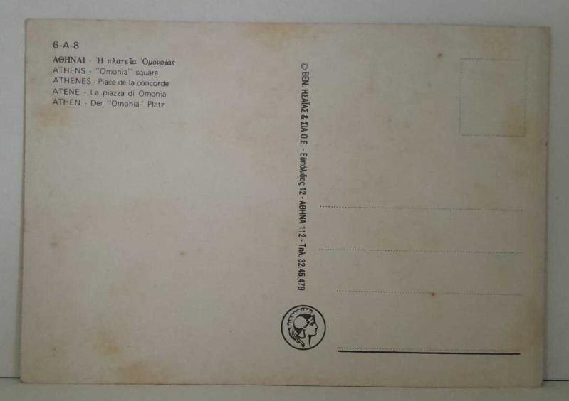 ŞEHİR KARTPOSTALI-YUNANİSTAN/ATİNA OMONİA MEYDANINDAN BİR GÖRÜNTÜ,ARKASINA YAZILMAMIŞ, RENKLİ, 12 X 16 CM EBADINDA - 1950'LER, 1960'LAR, 1970'LER, 1980'LER, en son 8 ay önce güncellenmiştir.