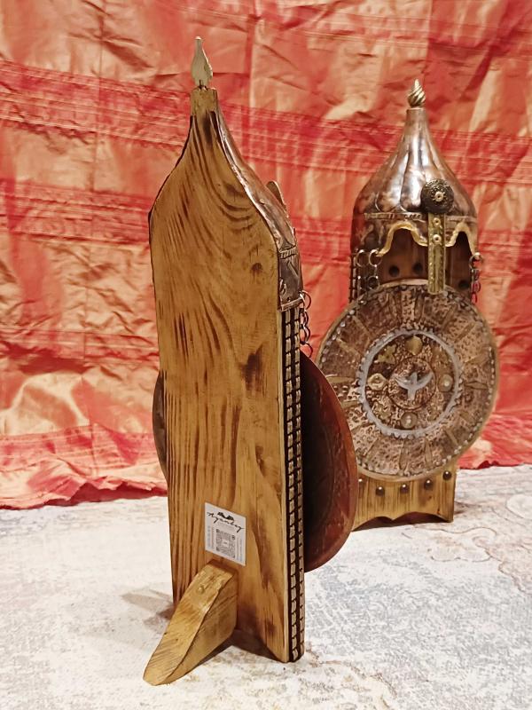 el işleme bakır miğfer ve kalkan, ahşap üzeri dekoratif hediyelik büst yüksekliği 50 cm genişliği 25 cm kalınlık 12 cm.