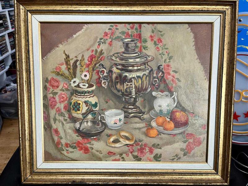 SEMAVERLİ NATÜRMORT YAĞLI BOYA TABLO başlıklı antika/koleksiyon objesi Türkiye menşe’lidir. 1950-1999 arası dönemine aittir.