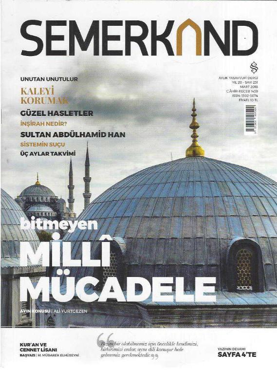 Kitap 2016 yılında SEMERKAND BASIM YAYIN tarafından [İSTANBUL] 1302-5074 ISBN kodu ile yayınlanmıştır. 58 sayfadır. SEMERKAND AYLIK TASAVVUFİ DERGİ SAYI 231 MART 2018 BİTMEYEN MİLLİ MÜCADELE, İNŞİRAH NEDİR?, SULTAN ABDÜLHAMİD HAN, KUR'AN VE CENNET LİSANI adlı eser Türkçe dilindedir.
