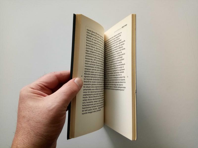Kitap, 13 cm genişliğinde 21 cm yüksekliğindedir.