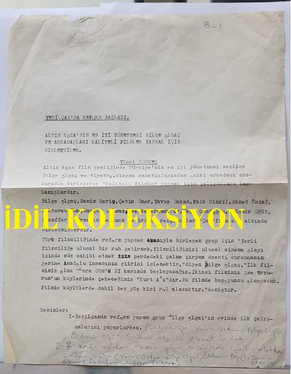 SENARİST ve YÖNETMEN BİLGE OLGAÇ'IN ORİJİNAL 6'LI MİNİ BOY FOTOĞRAF SETİ + ''YEŞİLÇAM'DA REFORM BAŞLADI'' BAŞLIKLI HABER METNİ KAĞIDI - FOTOĞRAFLAR 6 x 5 cm ve 4 x 3,5 cm EBADINDA - BİLGE OLGAÇ, YAVUZ ÖZKAN, ÖZDEMİR ÖĞÜT, SAMİM MERİÇ, AHMET ÜNDAĞ ve MUZAFFER TUĞRAN, YEŞİLÇAM'DA REFORM BAŞLATIP KALİTELİ FİLMLER YAPMAK KONUSUNDA KONUŞURLARKEN ÇEKİLMİŞ 6 FARKLI KARE başlıklı ürün, Efemera, Müzik, Sinema > Fotoğraflar > Sinema kategorisi altında İkinci El olarak satılmaktadır.
