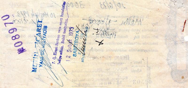 SENET " NETİN TİCARET " ŞAHANE PULLU BANKADAN GEÇMİŞ CİROLU 1973 İNAN TİCARETHANESİ KASIMPAŞA ALİ MUZAFFER ONDUR