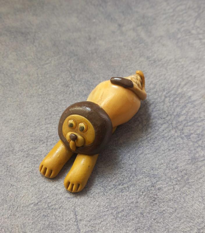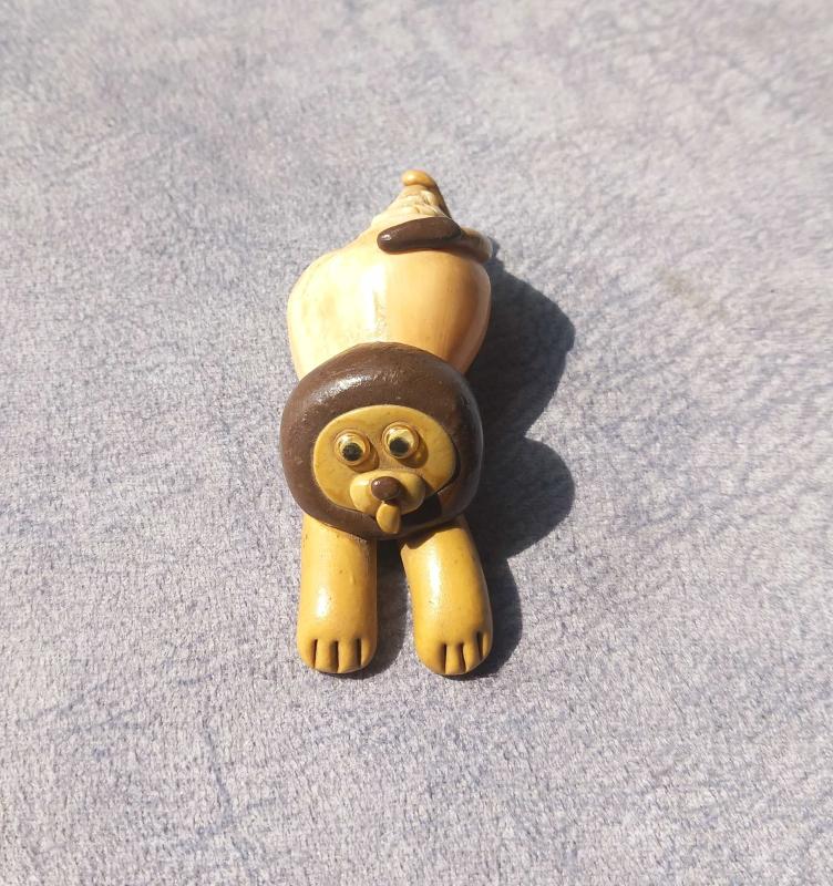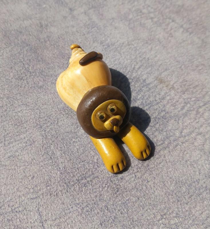SERAMİK VE DENİZ KABUĞUNDAN EL YAPIMI ASLAN FİGÜRÜ BİBLO. KONDİSYON YÜKSEK KOLEKSİYONLUK NADİR