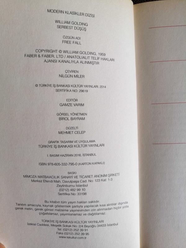 SERBEST DÜŞÜŞ, WILLIAM GOLDING tarafından kaleme alınmıştır. Kitap 2016 yılında yayınlanmıştır. 265 sayfadır. SERBEST DÜŞÜŞ adlı eser Türkçe dilindedir.