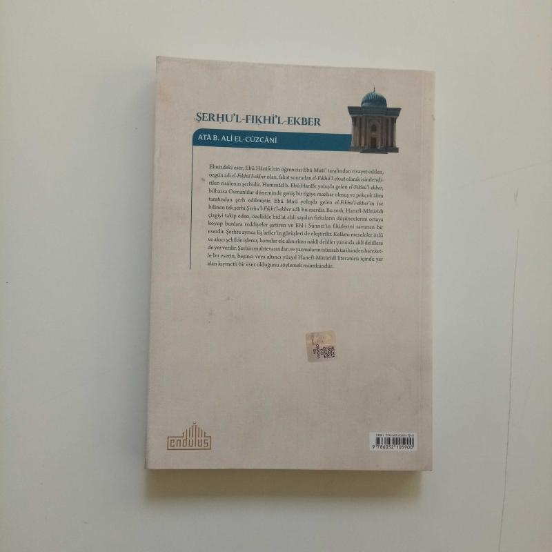 ŞERHU'L FIKHİ'L-EKBER (İMAM-I AZAM EBU HANİFE'NİN FİKHU'L- EKBER'İNİN ŞERHİ) (2. EL), ATA B. ALİ EL-CÜZCANİ tarafından kaleme alınmıştır. Eser SAVAŞ CİHANGİR TALİ editörlüğünde hazırlanmıştır. Kitap 2020 yılında ENDÜLÜS YAYINLARI tarafından [ İSTANBUL] 978-605-2105-90-0 ISBN kodu ile yayınlanmıştır. Satışta olan kitap, yayınevinin 1. baskısıdır. Bu baskının çevirisi ZÜLEYHA BİRİNCİ tarafından yapılmıştır. 256 sayfadır. Sayfa bilgisi 2. HAMUR olarak belirtilmiştir. ŞERHU'L FIKHİ'L-EKBER (İMAM-I AZAM EBU HANİFE'NİN FİKHU'L- EKBER'İNİN ŞERHİ) (2. EL) adlı eser Türkçe dilindedir.