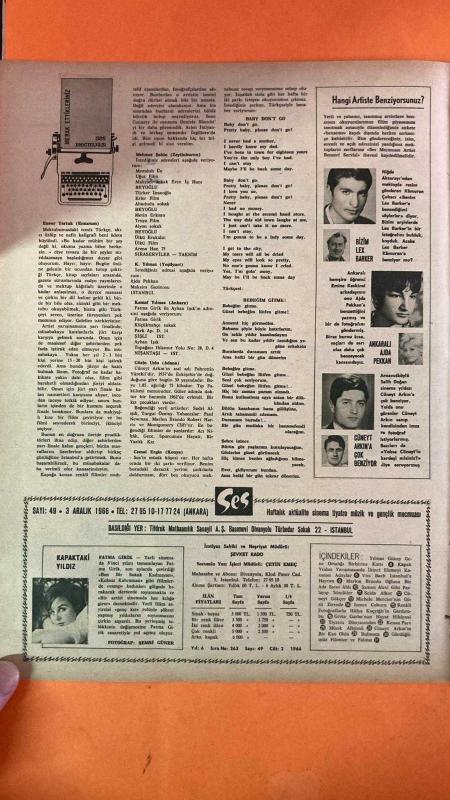 SES DERGİSİ - ARALIK 1966 KAPAK : YILMAZ GÜNEY – NEBAHAT ÇEHRE – FATMA GİRİK – AJDA PEKKAN – CÜNEYT ARKIN – AYHAN IŞIK – SADRI ALIŞIK – TURGUT ÖZATAY – PAUL NEWMAN – MARLON BRANDO – ROBERT HARRIS – MONTGOMERY CLIFT – MICHELE MERCIER – JAMES COBURN – GRETA GARBO – HÜLYA KOÇYİĞİT – SELDA ALKOR – CÜNEYT GÖKÇER – VIVI BACH – ENVER TARTUK – MEHMET ŞAHİN – KEMAL YILMAZ – GÜZİN USLU – CEMAL ERGİN – EMİNE KESKİNEL – KAMURAN ÇUHACI – SALİH DOĞAN – ŞEVKET RADO – ÇETİN EMEÇ – ŞEMSİ GÜNER – ŞARKI : BABY DON'T GO – TÜRKÇE VERSİYON : BEBEĞİM GİTME – FİLMLER : BEN BİR SOKAK KADINIYIM – KOLSUZ KAHRAMAN – İKİSİ DE CESURDU – KOVBOY ALİ – UMUT – ACI NİKAH – GECE – SPORCUNUN HAYATI – BİR YAZLIK KIZ – SES DERGİSİ – SES MEKTUP SERVİSİ – ARTİST BENZERİ YARIŞMASI – KAPAK YILDIZI YARIŞMASI – SES MÜZİK KÖŞESİ – SES BULMACA – SES FAL SAYFASI – SES TİYATRO DÜNYASI – SES GARDIROP - 28 SAYFA adlı eser Türkçe dilindedir.