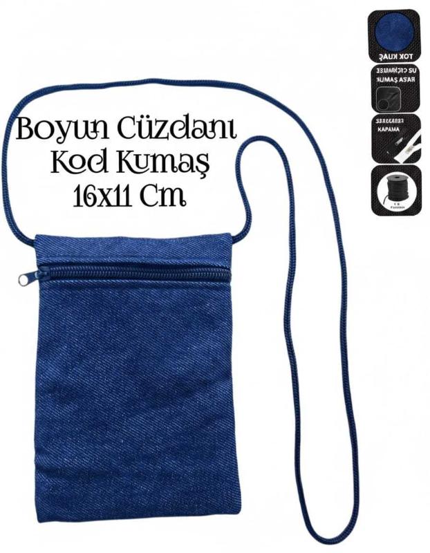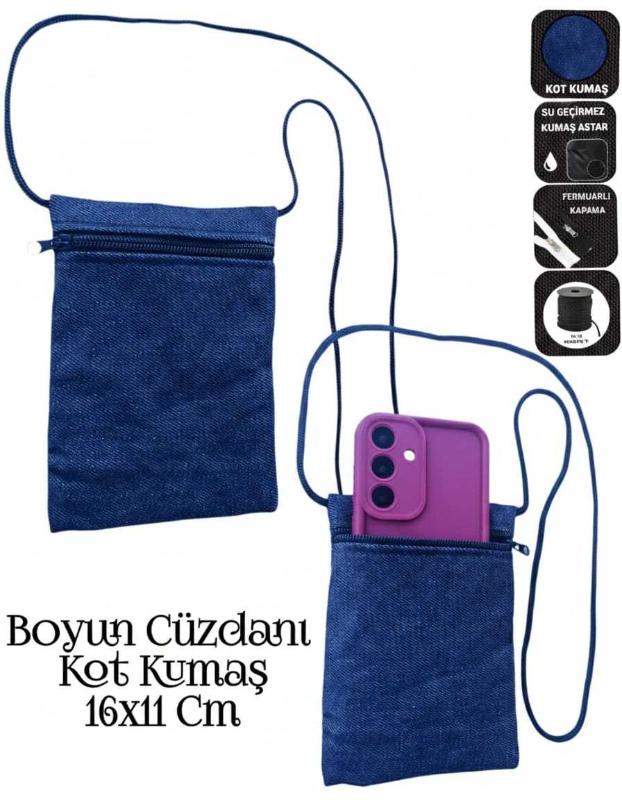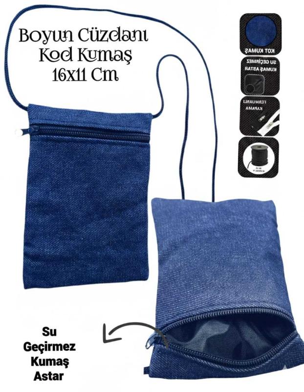 -Sevbags Boyun Cüzdanı -Kot Kumaştan İmal Edilmiştir -İç Kısım Su Geçirmez Kumaş İle Astarlanmıştır -Fermuarlı Kapama -3mm Örme Kolon Çanta İpi Kullanılmıştır -Yükseklik 16Cm, Genişlik 11Cm, İp Uzunluğu 90Cm Ölçülerinde İmal Edilmiştir
