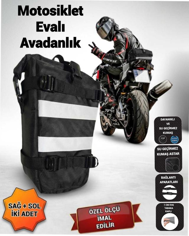 Ürün Açıklaması Sevbags Motosiklet Ön Koruma Demiri Avadanlık Çantaları Evalı _600 denye Su itici ithal kumaştan imal edilmiştir _iç kısım su itici 270 denye kumaş ile astarlanmıştır . _Kumaş Ve Astar Arasına Boşkende Dolgun Ve Güzel Durması İçin 1CM EVA TABAKA (KAMPÇI YATAĞI OLARAKTA GEÇER) Tabaka Eklenmiştir _hesaplı uygun olması için 600 denye kumaşla imal edildiği için 1900 denye kumaş kadar sağlam ve uzun ömürlü değildir . _4 Adet tokalı 3 adet cırt bağlantı şeklinde bağlantı düzeneği vardır . _elde taşıma kulpu . _yükseklik 31 cm, yan körük 12cm, genişlik üst 31cm alt 13cm ölçülerinde olup özel ölçü imalat yapılmaktadır . _gece sürüşü için önde iki adet fosforlu şerit eklenmiştir.