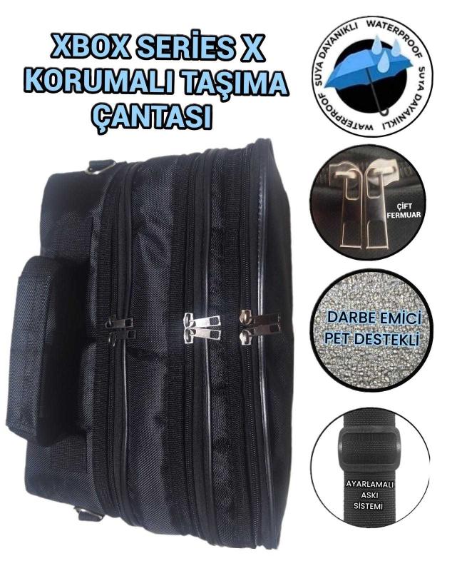 SEVBAGS XBOX SERİES-X TAŞIMA ÇANTASI SERİ X İÇİN BEDEN SEÇİMİ X SU GEÇİRMEZ KUMAŞ, İÇ KISMI DARBE EMİCİ PET DESTEKLİ, İTHAL SU GEÇİRMEZ ASTAR, ÇİFT FERMUARLI ,3 BÖLMELİ, 2GÖZLÜ KABLO VE APARAT İÇİN ÇİFT CEB, DİK DURUŞ İÇİN KENARLAR FİTİL DESTEKLİ, OMUZ TAŞIMA İÇİN AYARLANA BİLİR ASKI SAP, 30 CM GENİŞLİK. 20CM YÜKSEKLİK .16X5X2 YAN KÖRÜK