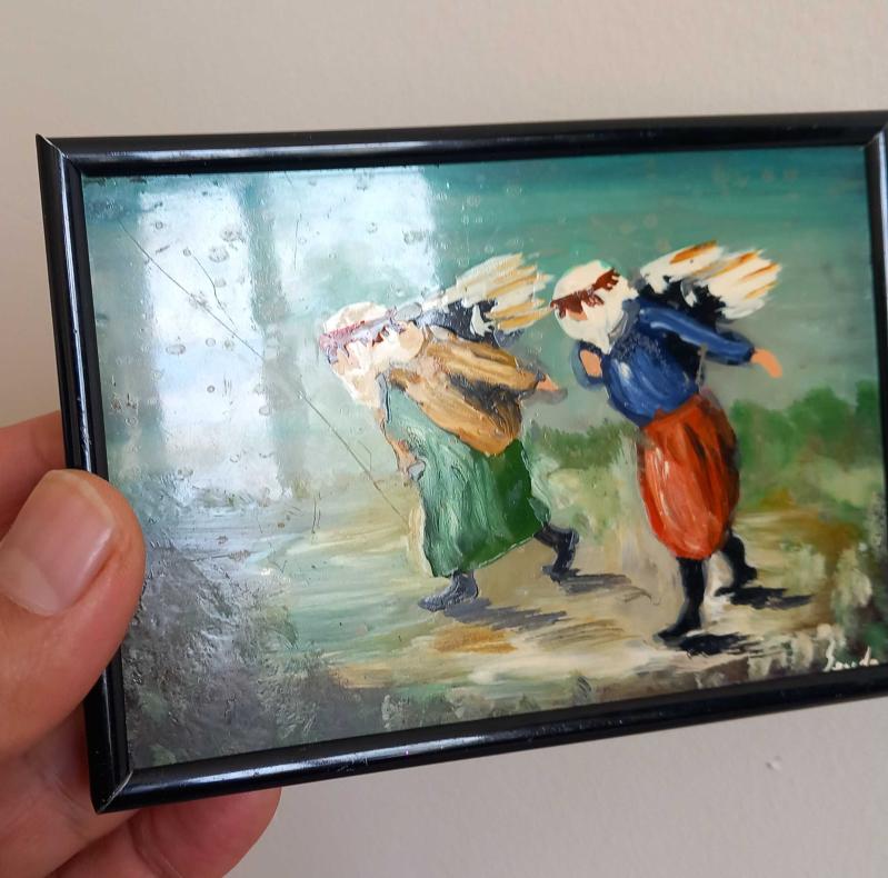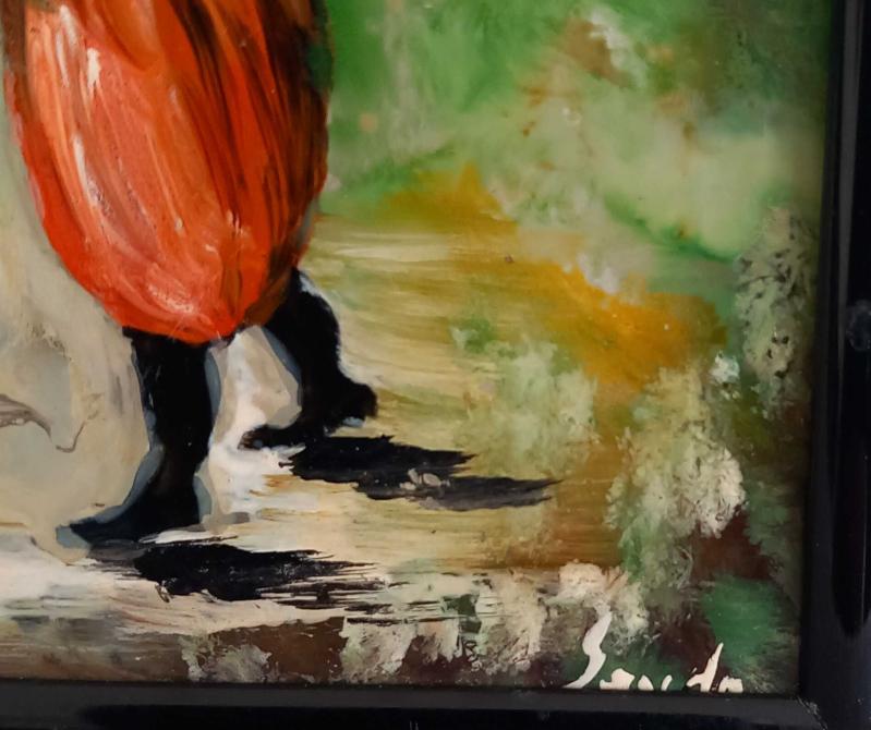 SEVDA İMZALI YAĞLIBOYA TABLO.40 - 50 YILLIK TABLO.BUZLU CAM ÜZERİNE RESMEDİLMİŞTİR RESİMDE BİR İKİ ÇİZİK MEVCUT. CAM SAĞLAM. ÇERÇEVE METAL. KOLEKSİYONLUK NADİR