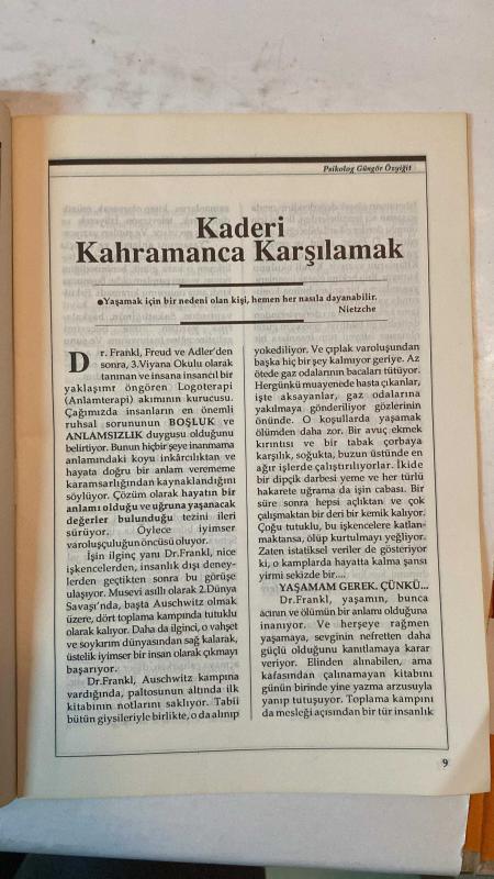 SEVGİ DÜNYASI DERGİSİ - TEMMUZ 1991 SAYI: 271 DR. REFET KAYSERİLİOĞLU - GÜNGÖR ÖZYİĞİT - ACAR DOĞANGÜN - TOLGA GÜNAL - VIKTOR FRANKL - BEYTÎ DOST - NIETZSCHE İYİLİK HUZURUN KARDEŞİDİR - İNSANÎ DEĞERLER TAM YOK OLMADAN - İNKÂRCILIK DİNİ VE MANEVİ DEĞERLERİN REDDİ - DÜNYANIN GİDİŞİ VE İKİYÜZLÜLÜK ELEŞTİRİSİ - KÖRFEZ SAVAŞI VE İNSAN HAKLARI SORGUSU - DAVAYA SADAKAT VE UMUT MESAJI - BEYTÎ DOST’TAN ÜMİTSİZLİĞE KARŞI SABIR VE SEVGİ TAVSİYESİ - NEWSWEEK’TEN AFRİKA KITLIĞI RAPORU - LOGOTERAPİ VE VIKTOR FRANKL’IN ANLAM ARAYIŞI - TOPLAMA KAMPLARINDA YAŞAM VE İYİMSERLİK - GÜLMEK GÜZELDİR: GÜNGÖR ÖZYİĞİT’TEN NÜKTELİ HİKÂYELER - KIRTASİYECİLİK VE BÜROKRASİ ELEŞTİRİSİ - BEKTAŞİ FIKRASI: YERSİZLİK - ÇİVİ GİBİ: İŞE YARAMAK İÇİN VURULMAK - HOCANIN TELÂŞI VE SÖZ AÇILMIŞKEN BÖLÜMÜ - TAM TAKIM EKSİKSİZ 42 SAYFA adlı eser, Kitap > Süreli Yayınlar > Dergiler > Magazin, Moda kategorisinde İkinci El olarak satıştadır.