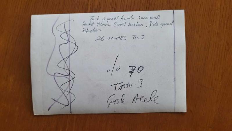 ŞEVKET YILMAZ'IN HABER METİNLİ ORİJİNAL AJANS-BASIN FOTOĞRAFI - 18 x 12 cm EBADINDA - TÜRK-İŞ GENEL BAŞKANI ŞEVKET YILMAZ, GENEL KURULDAKİ OYLAMADA OY KULLANIRKEN ÇEKİLMİŞ BİR KARE. 25 ARALIK 1983, en son 2 ay önce güncellenmiştir.