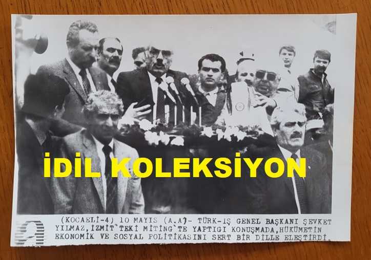 ŞEVKET YILMAZ'IN ORİJİNAL AJANS-BASIN FOTOĞRAFI - 18 x 12 cm EBADINDA - TÜRK-İŞ GENEL BAŞKANI ŞEVKET YILMAZ, KOCAELİ İZMİT'TEKİ MİTİNG SIRASINDA KONUŞMA YAPARKEN ÇEKİLMİŞ BİR KARE. 1987, en son bir ay önce güncellenmiştir.