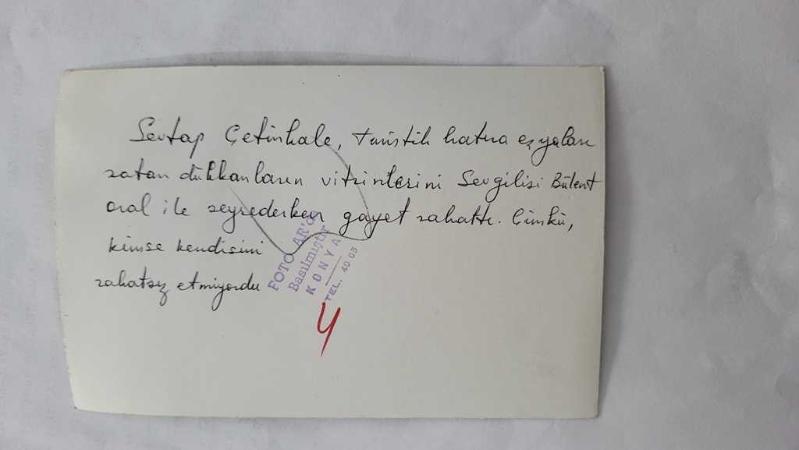 SEVTAP ÇETİNKALE'NİN ORİJİNAL FOTOĞRAFI - 14 x 9 cm EBADINDA - SEVTAP ÇETİNKALE, SEVGİLİSİ BÜLENT ORAL'LA ÇARŞIDA GEZERKEN ÇEKİLMİŞ BİR KARE. FOTO AR. KONYA, en son 5 ay önce güncellenmiştir.