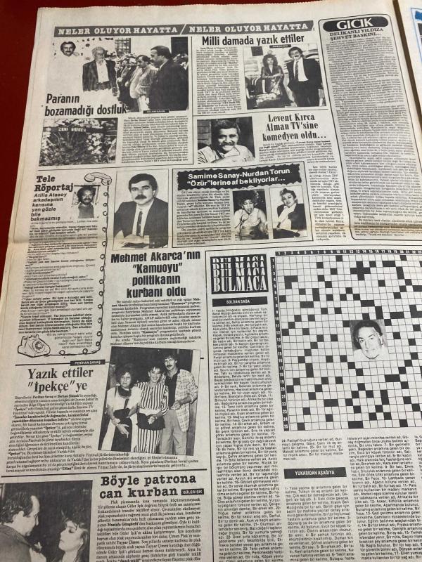 ŞEY HAFTALIK MAGAZİN GAZETESİ DOĞUM GÜNÜ HEDİYESİ ( Turkish Newspaper ) - 10 EKİM 1987 -TAM TAKIM 12 SAYFADIR -Nükhet Duru-Onno Tunç-Hülya Avşar-Ayla Algan-Melahat-Ahu Tuğba-Ajda Pekkan-Barış Manço-Perihan Abla-Seracettin Erman-Niyazi Daymaz-Kadir İnanır-Orhan Esen-Zeki Müren-Levent Kırca-Samime Sanay-Nurdan Torun-Mehmet Akarca-Perihan Savaş-Yılmaz Zafer-Kastelli-Ceylan-Fahrettin Karaardıç-Erol Evgin-Nesrin Topkapı-Tonya Köle-Ünal Hakan-Fikret Ural-Nazlı Sonmez-Bülent Kınay-Mahmut Güler-Nükhet Duru’nun masal düğünü-Hadi Sezen biz de evlenelim-Hülya Avşar’ın hamam alemi-Günah bin kere günah-Ajda Barış’ı nasıl yedi-Kral kralı acılı gününde yalnız bırakmadı-Hülyaların göğüs showu-Seracettin Erman aşığım-Babamda akıl olsaydı beni dansöz yapmazdı-İmam nikahlı adamdan milletvekili olmaz-Bu filmde bir ailenin tüm fertleri çalışıyor-Dünyayı karıştıran Amerika şimdi de Türkiye’yi karıştırdı-Yerli diziler de problem oldu-Paranın bozamadığı dostluk-Milli damada yazık ettiler-Levent Kırca Alman T adlı eser, Kitap > Süreli Yayınlar > Gazeteler > Türkiye > Genel > Günlük kategorisinde İkinci El olarak satıştadır.