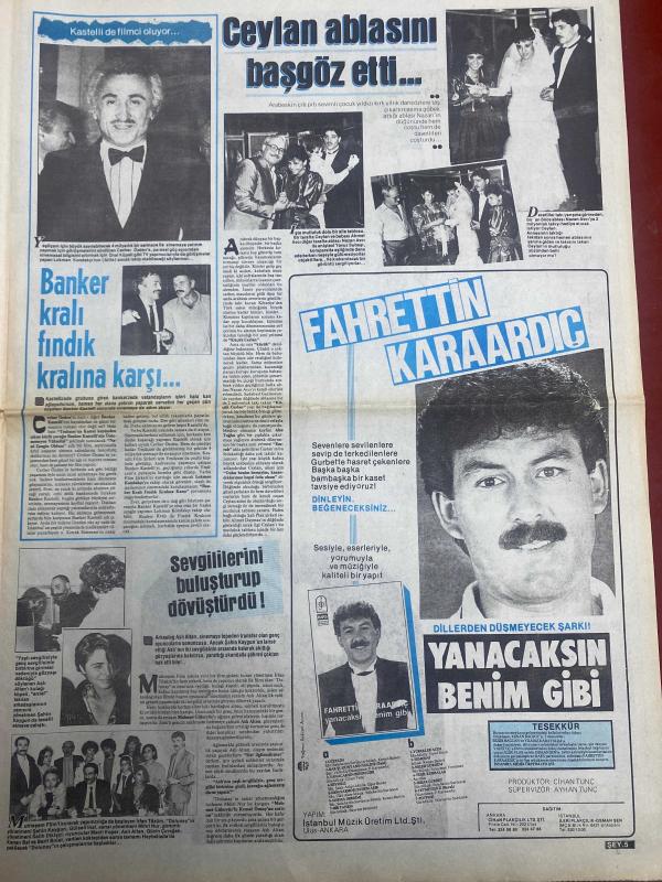 ŞEY HAFTALIK MAGAZİN GAZETESİ DOĞUM GÜNÜ HEDİYESİ ( Turkish Newspaper ) - 10 EKİM 1987 -TAM TAKIM 12 SAYFADIR -Nükhet Duru-Onno Tunç-Hülya Avşar-Ayla Algan-Melahat-Ahu Tuğba-Ajda Pekkan-Barış Manço-Perihan Abla-Seracettin Erman-Niyazi Daymaz-Kadir İnanır-Orhan Esen-Zeki Müren-Levent Kırca-Samime Sanay-Nurdan Torun-Mehmet Akarca-Perihan Savaş-Yılmaz Zafer-Kastelli-Ceylan-Fahrettin Karaardıç-Erol Evgin-Nesrin Topkapı-Tonya Köle-Ünal Hakan-Fikret Ural-Nazlı Sonmez-Bülent Kınay-Mahmut Güler-Nükhet Duru’nun masal düğünü-Hadi Sezen biz de evlenelim-Hülya Avşar’ın hamam alemi-Günah bin kere günah-Ajda Barış’ı nasıl yedi-Kral kralı acılı gününde yalnız bırakmadı-Hülyaların göğüs showu-Seracettin Erman aşığım-Babamda akıl olsaydı beni dansöz yapmazdı-İmam nikahlı adamdan milletvekili olmaz-Bu filmde bir ailenin tüm fertleri çalışıyor-Dünyayı karıştıran Amerika şimdi de Türkiye’yi karıştırdı-Yerli diziler de problem oldu-Paranın bozamadığı dostluk-Milli damada yazık ettiler-Levent Kırca Alman T, HÜSEYİN CAN tarafından kaleme alınmıştır. ŞEY HAFTALIK MAGAZİN GAZETESİ DOĞUM GÜNÜ HEDİYESİ ( Turkish Newspaper ) - 10 EKİM 1987 -TAM TAKIM 12 SAYFADIR -Nükhet Duru-Onno Tunç-Hülya Avşar-Ayla Algan-Melahat-Ahu Tuğba-Ajda Pekkan-Barış Manço-Perihan Abla-Seracettin Erman-Niyazi Daymaz-Kadir İnanır-Orhan Esen-Zeki Müren-Levent Kırca-Samime Sanay-Nurdan Torun-Mehmet Akarca-Perihan Savaş-Yılmaz Zafer-Kastelli-Ceylan-Fahrettin Karaardıç-Erol Evgin-Nesrin Topkapı-Tonya Köle-Ünal Hakan-Fikret Ural-Nazlı Sonmez-Bülent Kınay-Mahmut Güler-Nükhet Duru’nun masal düğünü-Hadi Sezen biz de evlenelim-Hülya Avşar’ın hamam alemi-Günah bin kere günah-Ajda Barış’ı nasıl yedi-Kral kralı acılı gününde yalnız bırakmadı-Hülyaların göğüs showu-Seracettin Erman aşığım-Babamda akıl olsaydı beni dansöz yapmazdı-İmam nikahlı adamdan milletvekili olmaz-Bu filmde bir ailenin tüm fertleri çalışıyor-Dünyayı karıştıran Amerika şimdi de Türkiye’yi karıştırdı-Yerli diziler de problem oldu-Paranın bozamadığı dostluk-Milli damada yazık ettiler-Levent Kırca Alman T adlı eser Türkçe dilindedir.