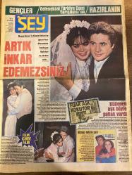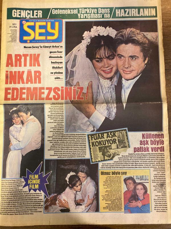 ŞEY HAFTALIK MAGAZİN GAZETESİ DOĞUM GÜNÜ HEDİYESİ ( Turkish Newspaper ) - 10 MART 1981 - TAM TAKIM 10 SAYFADIR -Nazan Şoray-Cüneyt Arkın-Filiz Akın-Ayhan Göçer-Bülent Ersoy-Zerrin Özer-Samime Sanay-Adnan Şenses-Suna Yıldızoğlu-Zerrin Özer-Neslihan Terzioğlu-Nuri Kaymak-Seyyal Taner-Müjde Ar-Hülya Koçyiğit-Cemile Kutçin-İzzet Altınmeşe-Mehlika Kenter-Tijen Erman-Müjdat Gezen-Sevil Bedia Akartürk-Bedri Kıvanç-Türkan Şoray-Orhan Gencebay-Tayfun Gözmen-Cevher Özden Artık inkâr edemezsiniz-Fuar aşk kokuyor-Külenen aşk böyle patlak verdi-Film içinde film-Olmaz böyle şey-Gizli hesaplar ortaya çıktı-Sevindi ve yıkıldı-Övünüyor çalışıyor ve güveniyoruz-Türkan Şoray’ın kıskandığı erkek-Moda ve Yaz ’81-İkinciye ya nasip-Artık saklanmıyorlar-Zorla güzellik olurmuş-Bir balon aşkı-Sahneye kur yapıyor-Bir saatlik beylik-Kastelli Atatürk yılına bir ilkokulla katılıyor adlı eser, Kitap > Süreli Yayınlar > Gazeteler > Türkiye > Genel > Günlük kategorisinde İkinci El olarak satıştadır.