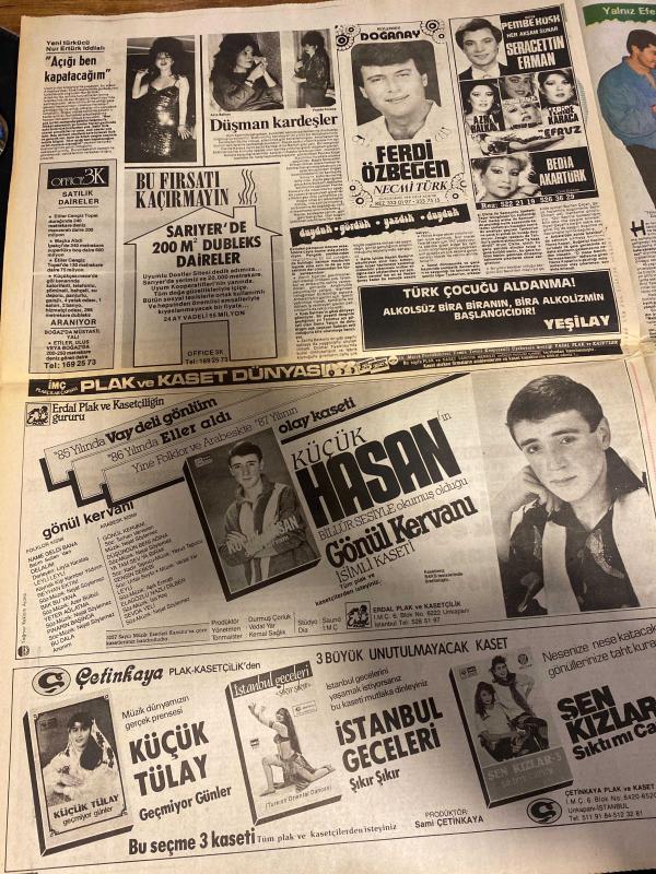 ŞEY HAFTALIK MAGAZİN GAZETESİ DOĞUM GÜNÜ HEDİYESİ ( Turkish Newspaper ) - 11 NİSAN 1987 -TAM TAKIM 12 SAYFADIR -Sibel Turnagöl-Seyyal Taner-Neşe Aksoy-Erol Tezeren-Melike Bahar Öztan-Nevzat Ayaz-Yaprak Sunal-Kemal Sunal-Süheyla Sunal-Hale Soygazi-Banu Pırılhasan-Deniz Türkali-Ferdi Özbeğen-Necmi Türk-Azra Balım-Ferhunde Karaca-Orhan Mandıra-Kamil Sönmez-Küçük Hasan-Küçük Tülay-Murat Yıldız-Müjde Ar-Atıf Yılmaz-Türkan Şoray-Sezen Aksu-Müslüm Yılmaz-Ferdi Tayfur-Nalan-Sevda Sayın-Burçin Orhon-Mine Koşan-Yüksel Uzel-Seda Sayın-Burçin Orhon-Mehri Fırat-Nursat Doğançişik-Canan Başkaya-Nazan Berk-Kadir İnanır-Halil Ergün-Dilek Şeniz-İğrenç İlişki-Bu Aşk Bir Kurban Verdi-Felaket Kadın-Bir Kalkavan’dan Bir Kalkavan’a-Melike’ye Aşık Oldum-Sahneye Yeşilçam’da Hazırlandı-Sinema Günleri’ne Yakışan Açılış-Bu Adama İnsan Diyen Ölsün-Düşman Kardeşler-Gönül Kervanı-Geçmişler Günler-İstanbul Geceleri-Sen Kızları Sıktım Canım-Murat Yıldız Bebek Gibi-Özal’dan Yardım Dalan’dan Jest Bekliyor-Beklenmeyen D, HÜSEYİN CAN tarafından kaleme alınmıştır. ŞEY HAFTALIK MAGAZİN GAZETESİ DOĞUM GÜNÜ HEDİYESİ ( Turkish Newspaper ) - 11 NİSAN 1987 -TAM TAKIM 12 SAYFADIR -Sibel Turnagöl-Seyyal Taner-Neşe Aksoy-Erol Tezeren-Melike Bahar Öztan-Nevzat Ayaz-Yaprak Sunal-Kemal Sunal-Süheyla Sunal-Hale Soygazi-Banu Pırılhasan-Deniz Türkali-Ferdi Özbeğen-Necmi Türk-Azra Balım-Ferhunde Karaca-Orhan Mandıra-Kamil Sönmez-Küçük Hasan-Küçük Tülay-Murat Yıldız-Müjde Ar-Atıf Yılmaz-Türkan Şoray-Sezen Aksu-Müslüm Yılmaz-Ferdi Tayfur-Nalan-Sevda Sayın-Burçin Orhon-Mine Koşan-Yüksel Uzel-Seda Sayın-Burçin Orhon-Mehri Fırat-Nursat Doğançişik-Canan Başkaya-Nazan Berk-Kadir İnanır-Halil Ergün-Dilek Şeniz-İğrenç İlişki-Bu Aşk Bir Kurban Verdi-Felaket Kadın-Bir Kalkavan’dan Bir Kalkavan’a-Melike’ye Aşık Oldum-Sahneye Yeşilçam’da Hazırlandı-Sinema Günleri’ne Yakışan Açılış-Bu Adama İnsan Diyen Ölsün-Düşman Kardeşler-Gönül Kervanı-Geçmişler Günler-İstanbul Geceleri-Sen Kızları Sıktım Canım-Murat Yıldız Bebek Gibi-Özal’dan Yardım Dalan’dan Jest Bekliyor-Beklenmeyen D adlı eser Türkçe dilindedir.