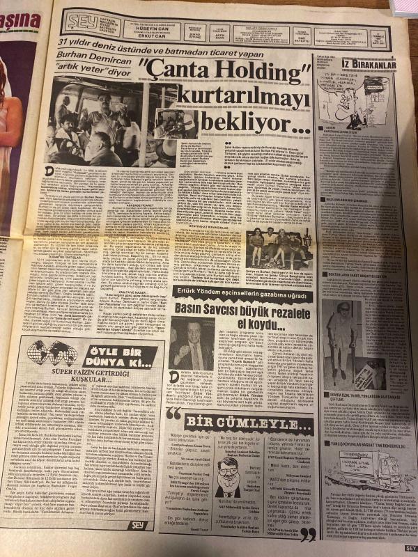 ŞEY HAFTALIK MAGAZİN GAZETESİ DOĞUM GÜNÜ HEDİYESİ ( Turkish Newspaper ) - 11 TEMMUZ 1987 -TAM TAKIM 12 SAYFADIR -Sibel Can-Ahu Tuğba-Hülya Işıl-Engin Berberoğlu-Serpil Çakmaklı-Martina Navratilova-Zerin Özer-Gökben-Zafir Seba-Halil Ergün-Ayşe Mine-Ümit Besen-Ferdi Tayfur-Ayşe Tunalı-Kurtuluş-Zeki Müren-Ahu Tuğba-Cüneyt Arkın-Betül Işıl-Melike Zobu-Burhan Demircan-Hüseyin Can-Erkut Can-Tarık Akan-Mine Mutlu-Kenan Kalav-Arif Susam-Funda Arar-Funda Arıturk-Müserref Akay-Hüner Coşkuner-Safiye Ünal-Zuhal Olcay-Tuluğ Çiğgen-SHP’li Başkan Sibel Can Kurtardı Çiplaklara Tokat-Politik Dansöz-Raks’ı Şahane Ahu’nun Kurbanı Oldu-Engin Berberoğlu’nun İstisizleri Sevdiğinin Resmidir-Sanatım Memelerimin Ucunda Değil-Genç Kızlar İçin Fahişe Oluyorum-Top Değmez Raketler-Akkadın Derginizin Yeni Sayısı Çıktı-Gökben Erkekçe Savaşıyor-Vatikan’da Soyununca Rahipler Kovaladı-Artist Olunca Sevişmeye Başladı-Arabesk Sultan-Ahu Cüneyt’in Başına Bela Olacak-Betül Işıl Çıldırabilir-Babasının Kızı-Çanta Holding Ku, HÜSEYİN CAN tarafından kaleme alınmıştır. ŞEY HAFTALIK MAGAZİN GAZETESİ DOĞUM GÜNÜ HEDİYESİ ( Turkish Newspaper ) - 11 TEMMUZ 1987 -TAM TAKIM 12 SAYFADIR -Sibel Can-Ahu Tuğba-Hülya Işıl-Engin Berberoğlu-Serpil Çakmaklı-Martina Navratilova-Zerin Özer-Gökben-Zafir Seba-Halil Ergün-Ayşe Mine-Ümit Besen-Ferdi Tayfur-Ayşe Tunalı-Kurtuluş-Zeki Müren-Ahu Tuğba-Cüneyt Arkın-Betül Işıl-Melike Zobu-Burhan Demircan-Hüseyin Can-Erkut Can-Tarık Akan-Mine Mutlu-Kenan Kalav-Arif Susam-Funda Arar-Funda Arıturk-Müserref Akay-Hüner Coşkuner-Safiye Ünal-Zuhal Olcay-Tuluğ Çiğgen-SHP’li Başkan Sibel Can Kurtardı Çiplaklara Tokat-Politik Dansöz-Raks’ı Şahane Ahu’nun Kurbanı Oldu-Engin Berberoğlu’nun İstisizleri Sevdiğinin Resmidir-Sanatım Memelerimin Ucunda Değil-Genç Kızlar İçin Fahişe Oluyorum-Top Değmez Raketler-Akkadın Derginizin Yeni Sayısı Çıktı-Gökben Erkekçe Savaşıyor-Vatikan’da Soyununca Rahipler Kovaladı-Artist Olunca Sevişmeye Başladı-Arabesk Sultan-Ahu Cüneyt’in Başına Bela Olacak-Betül Işıl Çıldırabilir-Babasının Kızı-Çanta Holding Ku adlı eser Türkçe dilindedir.