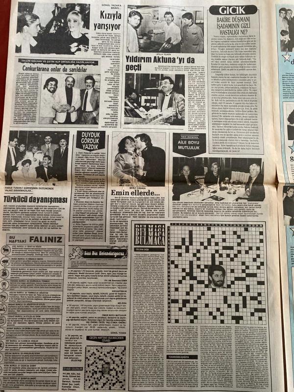ŞEY HAFTALIK MAGAZİN GAZETESİ DOĞUM GÜNÜ HEDİYESİ ( Turkish Newspaper ) - 18 MART 1989 -TAM TAKIM 10 SAYFADIR -Nazan Şoray-Turan Çevik-Türkan Şoray-Ayşegül-Neşe Aksoy-Sevim Egesoy-Sibel Barış-Lokman-Müşerref Akay-Hümeyra-Sisi-Metin Sarp-İpek Pınar-Nur Sürer-Müjde Ar-Ferdi Özbegen-Tülay Karaca-Zinnur Karaca-Atilla Arcan-Zeki Müren-Müjdat Gezen-Gönül Yazar-Yalçın Gülhan-Çetin Alp-Atilla Yelken-Meral Somen-Atila Özdemiroğlu-Yıldırım Aktuna Nazan Şoray’a çamur-Turan Çevik yüzünden başı yine dertte-Namusuna sürülen kara lekeyi silmek için her şeye razı-Tek desteği ablası-SHP’de Sultan hayranlığı-Ayşegül’ün son kumarı-Neşe Aksoy’un gizlediği nikah-Sevim Egesoy kural tanımıyor-Bu kadına “dur” diyecek yok mu-Lokman’la evleniyorum-Müşerref’e sevgi çemberi-Çirkin dedikodu-Benim kocam olamadı ki-Bu dostluğun tadı başka-Ferdi’nin zor günleri-Travesti Tolga’ya rağbet çok-Teyzesinin yolundaki dansöz-Tükenmez sermayeler-Kızıyla yarışıyor-Cankurtaran’a onlar da saldırdı-Yıldırım Aktuna’yı da geçti-Ba, HÜSEYİN CAN tarafından kaleme alınmıştır. ŞEY HAFTALIK MAGAZİN GAZETESİ DOĞUM GÜNÜ HEDİYESİ ( Turkish Newspaper ) - 18 MART 1989 -TAM TAKIM 10 SAYFADIR -Nazan Şoray-Turan Çevik-Türkan Şoray-Ayşegül-Neşe Aksoy-Sevim Egesoy-Sibel Barış-Lokman-Müşerref Akay-Hümeyra-Sisi-Metin Sarp-İpek Pınar-Nur Sürer-Müjde Ar-Ferdi Özbegen-Tülay Karaca-Zinnur Karaca-Atilla Arcan-Zeki Müren-Müjdat Gezen-Gönül Yazar-Yalçın Gülhan-Çetin Alp-Atilla Yelken-Meral Somen-Atila Özdemiroğlu-Yıldırım Aktuna Nazan Şoray’a çamur-Turan Çevik yüzünden başı yine dertte-Namusuna sürülen kara lekeyi silmek için her şeye razı-Tek desteği ablası-SHP’de Sultan hayranlığı-Ayşegül’ün son kumarı-Neşe Aksoy’un gizlediği nikah-Sevim Egesoy kural tanımıyor-Bu kadına “dur” diyecek yok mu-Lokman’la evleniyorum-Müşerref’e sevgi çemberi-Çirkin dedikodu-Benim kocam olamadı ki-Bu dostluğun tadı başka-Ferdi’nin zor günleri-Travesti Tolga’ya rağbet çok-Teyzesinin yolundaki dansöz-Tükenmez sermayeler-Kızıyla yarışıyor-Cankurtaran’a onlar da saldırdı-Yıldırım Aktuna’yı da geçti-Ba adlı eser Türkçe dilindedir.