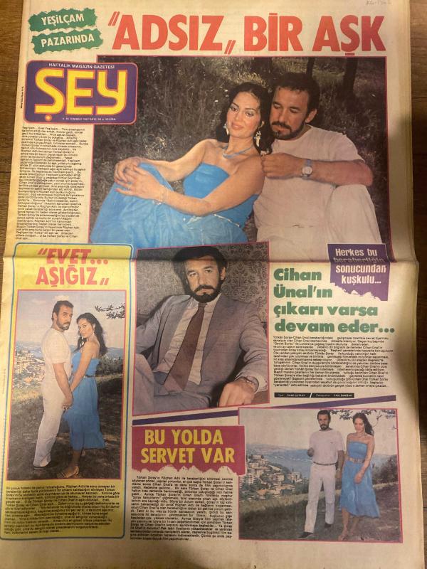 ŞEY HAFTALIK MAGAZİN GAZETESİ DOĞUM GÜNÜ HEDİYESİ ( Turkish Newspaper ) - 18 TEMMUZ 1983 - TAM TAKIM 12 SAYFADIR -Haci Arif Bey’de müzikal yıldızı oldu-Bülent Ersoy ve Beşiktaşlı Mustafa-Rüçhan Adlı - Cihan Ünal - Türkan Şoray - Ahu Tuğba - Kadir İnanır - Sezer Güvenirgil - Nuhben Durur - Hülya Koçyiğit - Gönül Yazar - Fatma Girik - Türkan Şoray - Sezen Cumhur Önal - İbrahim Tatlıses - Derya Tuna - Sergül Çakar - Gönül Yazar - Tanju Okan - İlhan İrem - Seçil Heper - Nilüfer - Nihat Akçan - Seracettin Erman - Bedia Akartürk - Recep Kaymak - Rüçhan Adlı ve Cihan Ünal - Adsız Bir Aşk - Evet Aşığız - Bu Yolda Servet Var - Bu Aşk Küllenmeyecek - Tarihe Karışan Kadın - Onlar da Erkekliği Tatmışlardı - Evlensin Sahidi Ben Olurum - Tükürdüğünü Yalattılar - İşte Gönül Yazar’ın Mal Varlığı - Tanju Okan’ı Denize Hapsettiler - İlhan İrem Öleceği Günü Biliyor - Dışarıda Yap Ne Yaparsan Yap - Bu İş Buraya Kadar - Kucaktan Kucağa Aşk - Dört Günlük Birşey - Sahnede İki Rakip Dostlukları Bir Garip adlı eser, Kitap > Süreli Yayınlar > Gazeteler > Türkiye > Genel > Günlük kategorisinde İkinci El olarak satıştadır.