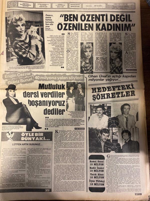 ŞEY HAFTALIK MAGAZİN GAZETESİ DOĞUM GÜNÜ HEDİYESİ ( Turkish Newspaper ) - 2 NİSAN 1984 -TAM TAKIM 16 SAYFADIR -Nazan Şoray-Türkan Şoray-Bülent Ersoy-Fikret Hakan-Uğurböceği Yalçın-Ateşböceği Ercan-Müjde Ar-Yüksel Uzel-Sezen Aksu-Nihal Kökna-Cumali Dalcı-Bilge Şan-Müslüm Gürses-Mualla Omay-Zehra Suat-Kibariye-Hüsamettin Subaşı-Engin Cezzar-Gülriz Sururi-Cihan Ünal-Sümer Dundar-Ayşe Özdemir-Kemal Sunal-Kadir İnanır-Tarık Akan-İlyas Tüfekçi-Oya Aydoğan-Nurcan Gürsaat-Yıldırım Gürses-Şenay Şerif-Yasemin Nilüfer-Zerrin Nazlı-Necla Nazır-Bülent Ersoy-Ayşin Atay-Ayhan Gencer-Nükhet Duru-Alpay-Salih Acar-Eniştemden koca olmaz-Kurtuluş yolunda ilk adım-Kraliçe kim-Eski ortaklar rakip oldu-Müjde de Almanya’da işçi olacak-Bunlar da bir başka hasta-İsrail cehenneminden geliyorum-Ortanca hızlı çıktı-Arabeskin babası çıplaklara saldırdı-Bilge Şan da assolist oluyor-Kocan elden gidiyor-Ben özenti değil özenilen kadınım-Mutluluk dersi verdiler boşanıyoruz dediler-Hedefteki şöhretler-Profesyonel oyunc, HÜSEYİN CAN tarafından kaleme alınmıştır. ŞEY HAFTALIK MAGAZİN GAZETESİ DOĞUM GÜNÜ HEDİYESİ ( Turkish Newspaper ) - 2 NİSAN 1984 -TAM TAKIM 16 SAYFADIR -Nazan Şoray-Türkan Şoray-Bülent Ersoy-Fikret Hakan-Uğurböceği Yalçın-Ateşböceği Ercan-Müjde Ar-Yüksel Uzel-Sezen Aksu-Nihal Kökna-Cumali Dalcı-Bilge Şan-Müslüm Gürses-Mualla Omay-Zehra Suat-Kibariye-Hüsamettin Subaşı-Engin Cezzar-Gülriz Sururi-Cihan Ünal-Sümer Dundar-Ayşe Özdemir-Kemal Sunal-Kadir İnanır-Tarık Akan-İlyas Tüfekçi-Oya Aydoğan-Nurcan Gürsaat-Yıldırım Gürses-Şenay Şerif-Yasemin Nilüfer-Zerrin Nazlı-Necla Nazır-Bülent Ersoy-Ayşin Atay-Ayhan Gencer-Nükhet Duru-Alpay-Salih Acar-Eniştemden koca olmaz-Kurtuluş yolunda ilk adım-Kraliçe kim-Eski ortaklar rakip oldu-Müjde de Almanya’da işçi olacak-Bunlar da bir başka hasta-İsrail cehenneminden geliyorum-Ortanca hızlı çıktı-Arabeskin babası çıplaklara saldırdı-Bilge Şan da assolist oluyor-Kocan elden gidiyor-Ben özenti değil özenilen kadınım-Mutluluk dersi verdiler boşanıyoruz dediler-Hedefteki şöhretler-Profesyonel oyunc adlı eser Türkçe dilindedir.