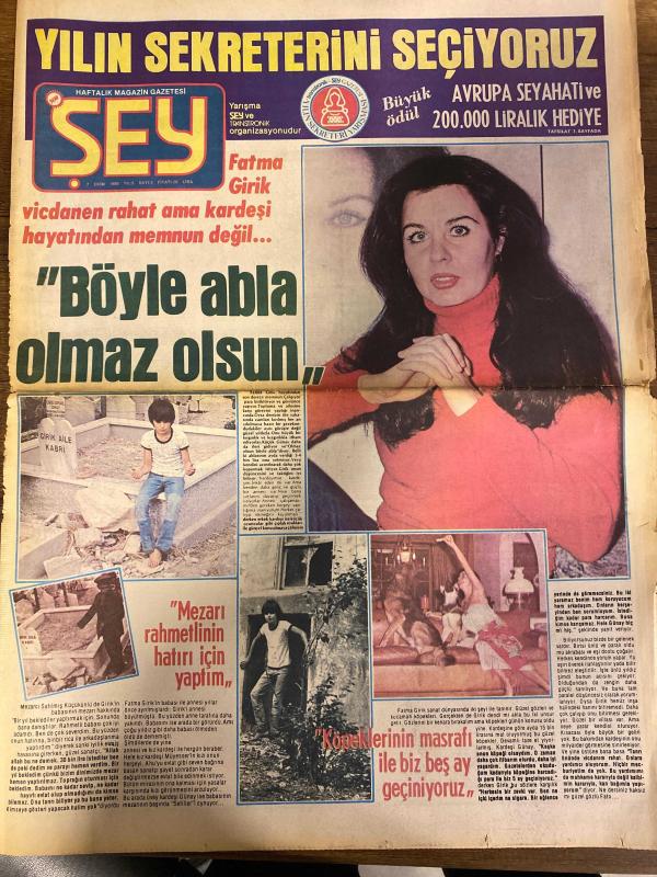 ŞEY HAFTALIK MAGAZİN GAZETESİ DOĞUM GÜNÜ HEDİYESİ ( Turkish Newspaper ) - 7 EKİM 1980 - TAM TAKIM 12 SAYFADIR - FİLİZ AKIN POSTERİ TAM SAYFA - Fatma Girik-Gülşah-Gökben-Türkan Tunca-Perihan Sözen-Talha Özmen-Nihal Yeşil-Mehmet Taneri-Suna Bayram-Sevgi Ferda-Şehriban Gül-Aylin Urgal-Ayşegül-Ayla-Saadet Gürses-Gülgün Eray-Sema Yıldız-Mine Zeren-Safiye Ünal-Alev İpek-Serma Turel-Sevim Alpay-Tulin Tan-Fatoş Danimaz-Arzu Tüer-Meral Zuhal-Gülşen Akisel-Ünal Nargün-Mahmut Tuncer-Berrin Özer-Orhan Gencebay-Ajlan Altuğ-İbrahim Tatlıses-Ayla Algan-Hayati Asılyazıcı-Rıfat Ababay-Yasarı Eraslan Yılın sekreterini seçiyoruz-Böyle abla olmaz olsun-Mezarı rahmetlinin hatırı için yaptım-Köpeklerinin masrafı ile biz beş ay geçiniyoruz-Gülşah sinemaya veda etti-Gökben artık mutlu-Bir yuva yıkıyor-Gizli mutluluk kısa sürdü-Gencebay efsanesi tehlikede-Bülent Ersoy için kampanya açıldı-Evlenmesine oğlu izin vermiyor-İbrahim Tatlıses bir mumdur aman kardeşim-Hayatı kaydı-Mumu söndürmeye çalışıyor-Zorunlu an, ORHAN OLCAY tarafından kaleme alınmıştır. ŞEY HAFTALIK MAGAZİN GAZETESİ DOĞUM GÜNÜ HEDİYESİ ( Turkish Newspaper ) - 7 EKİM 1980 - TAM TAKIM 12 SAYFADIR - FİLİZ AKIN POSTERİ TAM SAYFA - Fatma Girik-Gülşah-Gökben-Türkan Tunca-Perihan Sözen-Talha Özmen-Nihal Yeşil-Mehmet Taneri-Suna Bayram-Sevgi Ferda-Şehriban Gül-Aylin Urgal-Ayşegül-Ayla-Saadet Gürses-Gülgün Eray-Sema Yıldız-Mine Zeren-Safiye Ünal-Alev İpek-Serma Turel-Sevim Alpay-Tulin Tan-Fatoş Danimaz-Arzu Tüer-Meral Zuhal-Gülşen Akisel-Ünal Nargün-Mahmut Tuncer-Berrin Özer-Orhan Gencebay-Ajlan Altuğ-İbrahim Tatlıses-Ayla Algan-Hayati Asılyazıcı-Rıfat Ababay-Yasarı Eraslan Yılın sekreterini seçiyoruz-Böyle abla olmaz olsun-Mezarı rahmetlinin hatırı için yaptım-Köpeklerinin masrafı ile biz beş ay geçiniyoruz-Gülşah sinemaya veda etti-Gökben artık mutlu-Bir yuva yıkıyor-Gizli mutluluk kısa sürdü-Gencebay efsanesi tehlikede-Bülent Ersoy için kampanya açıldı-Evlenmesine oğlu izin vermiyor-İbrahim Tatlıses bir mumdur aman kardeşim-Hayatı kaydı-Mumu söndürmeye çalışıyor-Zorunlu an adlı eser Türkçe dilindedir.