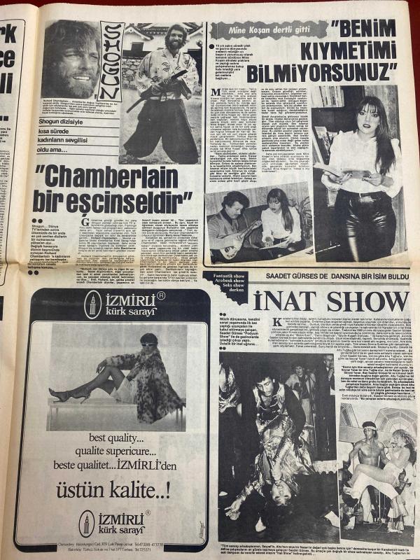 ŞEY HAFTALIK MAGAZİN GAZETESİ DOĞUM GÜNÜ HEDİYESİ ( Turkish Newspaper ) - 7 ŞUBAT 1983 - TAM TAKIM 12 SAYFADIR -Nigar uluerer röportajı-Mine Koşan-Chamberlain-Saadet gürses-Nükhet Duru-Tarık Akan-Ümit Besen-Gönül Göksel-Muazzez Ersoy-Saadet Gürses-Hüner Coşkuner-Yılmaz Güney-Bülent Ersoy-Müjdat Gezen-Cüneyt Arkın-Mesut Öhnner-Banu Alkan-Turgut Özal-Zerrin Özer-Deniz Uğur-Zafer Sefa-Akın Uğurlu-Hülya Yiğitalp-Dilek Aldo-Ediz Onay-İzzet Öz-Mahmut Ovur-Nazan Şoray-Hülya Süer-Yasemin Kumral-Şakir Üner-Romali Perihan-Semra Lütken-Atilla Simsek-Mine Mater-Parlasenol-Engin Evin-Mine Mutlu-Ayla Algan-Mine Söğüt-Murat Perihan-Ayla Algan Nükhet Duru vicdan azabı çekiyor-Bu ihtiyar kim?-25 yıl sonra yaşanan dram-Kızım ben senin ciciannenim-Moral vermeye gitmişti kahroldu-Tarık Akan bir saatte yaşlandı-Bir sigara yakmaz mısınız?-Bu kadın başımın belası!-Beni Müjdat Gezen ihbar etti!-Türkiye’yi yanlış tanıyorsunuz-Cüneyt Arkın “dişi bond” yaratıyor-İki elinde 10 alyans-“İnşallah biri gerçek olur”, HÜSEYİN CAN tarafından kaleme alınmıştır. ŞEY HAFTALIK MAGAZİN GAZETESİ DOĞUM GÜNÜ HEDİYESİ ( Turkish Newspaper ) - 7 ŞUBAT 1983 - TAM TAKIM 12 SAYFADIR -Nigar uluerer röportajı-Mine Koşan-Chamberlain-Saadet gürses-Nükhet Duru-Tarık Akan-Ümit Besen-Gönül Göksel-Muazzez Ersoy-Saadet Gürses-Hüner Coşkuner-Yılmaz Güney-Bülent Ersoy-Müjdat Gezen-Cüneyt Arkın-Mesut Öhnner-Banu Alkan-Turgut Özal-Zerrin Özer-Deniz Uğur-Zafer Sefa-Akın Uğurlu-Hülya Yiğitalp-Dilek Aldo-Ediz Onay-İzzet Öz-Mahmut Ovur-Nazan Şoray-Hülya Süer-Yasemin Kumral-Şakir Üner-Romali Perihan-Semra Lütken-Atilla Simsek-Mine Mater-Parlasenol-Engin Evin-Mine Mutlu-Ayla Algan-Mine Söğüt-Murat Perihan-Ayla Algan Nükhet Duru vicdan azabı çekiyor-Bu ihtiyar kim?-25 yıl sonra yaşanan dram-Kızım ben senin ciciannenim-Moral vermeye gitmişti kahroldu-Tarık Akan bir saatte yaşlandı-Bir sigara yakmaz mısınız?-Bu kadın başımın belası!-Beni Müjdat Gezen ihbar etti!-Türkiye’yi yanlış tanıyorsunuz-Cüneyt Arkın “dişi bond” yaratıyor-İki elinde 10 alyans-“İnşallah biri gerçek olur” adlı eser Türkçe dilindedir.