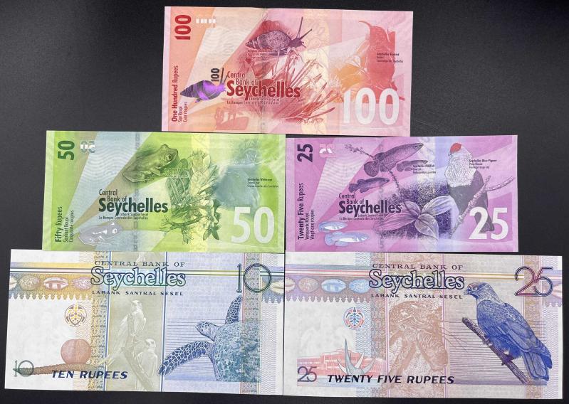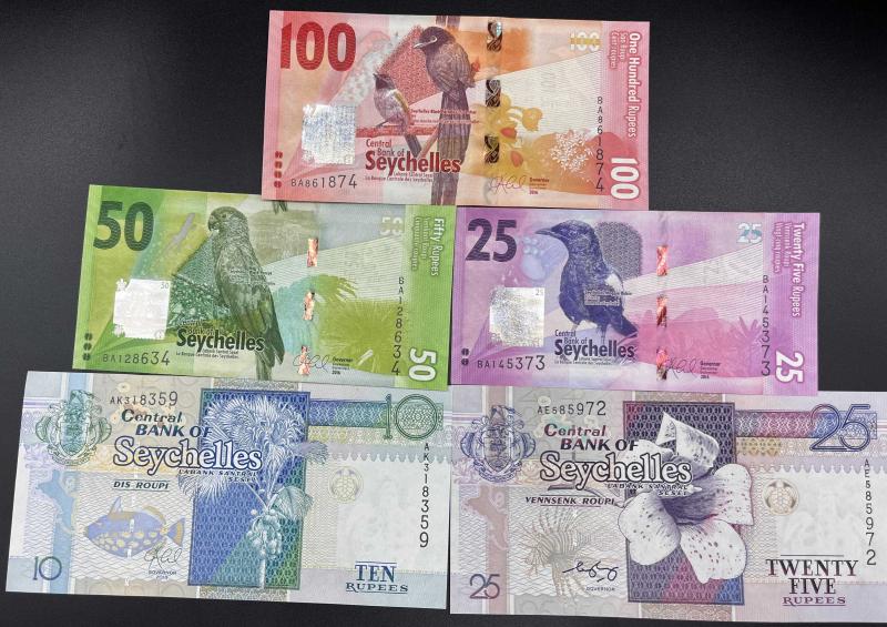 SEYŞELLER 5 Lİ ÇİL SET 100 RUPHİ 50 RUPHİ 25 RUPHİ 25 RUPHİ ESKİ DÖNEM 10 RUPHİ ESKİ DÖNEM