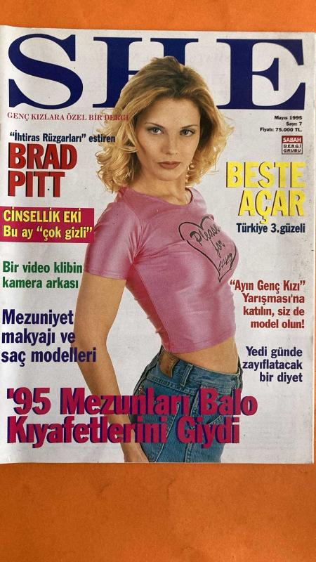 SHE DERGİSİ - MAYIS 1995 KAPAK : BRAD PITT – BESTE ACAR – İHTİRAS RÜZGARLARI – CİNSELLİK EKİ – MEZUNİYET MAKYAJI – MEZUNİYET SAÇ MODELLERİ – AYIN GENÇ KIZI YARIŞMASI – SHE DERGİSİ – SABAH DERGİ GRUBU – SHOW TV – TÜRKİYE GÜZELLİK YARIŞMASI – KAYAHAN – RICHARD TYLER – MASUM VE ROMANTİK SAÇ MODELİ – SHE BAR – AKMERKEZ – NEO DEKORASYON – PABETLAND – REEBOK – SHOE-ME – STONES – THINK PINK – TIFFANY TOMATO – TWEEN BY DAMAT – APRIDO – ARK LINE – ARTEMIS – ATELYE DERİN – AQUAVERDE – BEST HEDİYELİK – BEYMEN ACADEMIA – BIG STAR – BRAV – BÜKE – COLLEZIONE – D.P.STORE – DERİN – DERISHOW – DISCRETE – DOCKSTEPS – DÜNYA GENÇLİK MERKEZİ – ELLE – ETAP MOBİLYA – EUROMODA – FİYONK EL SANATLARI – GILDA MARX – GORBON – HOME STORE – HOTIC – İNFİNİTY – JAI COLLECTION – LA SCARPA – LOFT – MUDO CITY – VAKKORAMA – WOODS – YARGICI – CAFE COCO – CAFE DINO – CAFE MAFE – ESCOBAR – FLY INN – SUSAM – TOUCHDOWN – STATIONIST – PRINTEMPS – VİDEO KLİP KAMERA ARKASI – ZAYIFLAMA DİYETİ – MEZUNLAR BALO KIYAF - 98 SAYFA adlı eser Türkçe dilindedir.