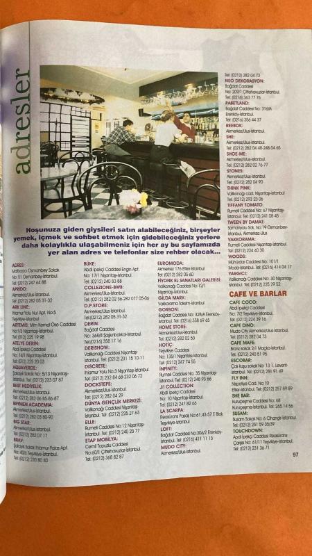 SHE DERGİSİ - MAYIS 1995 KAPAK : BRAD PITT – BESTE ACAR – İHTİRAS RÜZGARLARI – CİNSELLİK EKİ – MEZUNİYET MAKYAJI – MEZUNİYET SAÇ MODELLERİ – AYIN GENÇ KIZI YARIŞMASI – SHE DERGİSİ – SABAH DERGİ GRUBU – SHOW TV – TÜRKİYE GÜZELLİK YARIŞMASI – KAYAHAN – RICHARD TYLER – MASUM VE ROMANTİK SAÇ MODELİ – SHE BAR – AKMERKEZ – NEO DEKORASYON – PABETLAND – REEBOK – SHOE-ME – STONES – THINK PINK – TIFFANY TOMATO – TWEEN BY DAMAT – APRIDO – ARK LINE – ARTEMIS – ATELYE DERİN – AQUAVERDE – BEST HEDİYELİK – BEYMEN ACADEMIA – BIG STAR – BRAV – BÜKE – COLLEZIONE – D.P.STORE – DERİN – DERISHOW – DISCRETE – DOCKSTEPS – DÜNYA GENÇLİK MERKEZİ – ELLE – ETAP MOBİLYA – EUROMODA – FİYONK EL SANATLARI – GILDA MARX – GORBON – HOME STORE – HOTIC – İNFİNİTY – JAI COLLECTION – LA SCARPA – LOFT – MUDO CITY – VAKKORAMA – WOODS – YARGICI – CAFE COCO – CAFE DINO – CAFE MAFE – ESCOBAR – FLY INN – SUSAM – TOUCHDOWN – STATIONIST – PRINTEMPS – VİDEO KLİP KAMERA ARKASI – ZAYIFLAMA DİYETİ – MEZUNLAR BALO KIYAF - 98 SAYFA adlı eser, Kitap > Süreli Yayınlar > Dergiler > Magazin, Moda kategorisinde İkinci El olarak satıştadır.