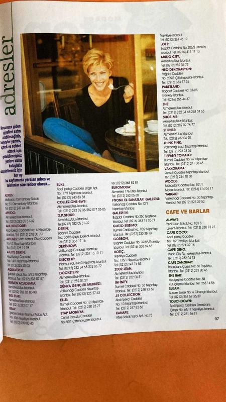 SHE DERGİSİ - OCAK 1995 - GENÇ KIZLARA ÖZEL DERGİ – MURAT PARASAYAR – AYIN GENÇ KIZI YARIŞMASI – KAĞIT BEBEKLER – MODADA ASKER GİYSİLERİ – GENÇ KIZLAR VE CİNSELLİK – BOZULAN ARKADAŞLIK – ERKEKLER NEDEN LAF ATAR – HERKESE BEDAVA ÖZEL EK – ASTROLOJİ BURÇ YORUMLARI – ASLAN – BAŞAK – TERAZİ – AKREP – YAY – OĞLAK – ADRES REHBERİ – MODA MAĞAZALARI – CAFE VE BARLAR – APRIDO – ARK BOUTIQUE – ARTEMIS – ATELYE DERİN – AQUAVERDE – BEYMEN ACADEMIA – BIG STAR – BRAV – BÜKE – COLLEZIONE BWB – D.P.STORE – DERİN – DERİSHOW – DISCRETE – DOCKSTEPS – DÜNYA GENÇLİK MERKEZİ – ELLE – ETAP MOBİLYA – EUROMODA – FİYONK EL SANATLARI – GALERİ İKİ – GUSTO SISSIMO – GORBON – HOTİÇ – 2002 JEAN – İNFİNİTY – JAI COLLECTION – KANAPE – LOFT – MUDO CITY – NEO DEKORASYON – PABETLAND – SHE – SHOE ME – STONES – THINK PINK – TIFFANY TOMATO – VAKKORAMA – WOODS – YARGICI – ALWAYS – CAFE COCO – CAFE DINO – CAFE ZANZIBAR – SHE BAR – SUSAM – TOUCHDOWN - 98 SAYFA adlı eser, Kitap > Süreli Yayınlar > Dergiler > Magazin, Moda kategorisinde İkinci El olarak satıştadır.