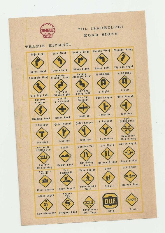 ** SHELL LOGOLU YOL İŞARETLERİ ** 17.5 x 11.5 cm.ebadında,arka yüzü baskısız, süper ötesi temiz durumda,yol işaretleri konulu karton tabeladır...