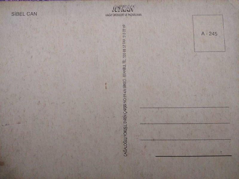 SİBEL CAN KARTPOSTALI,ARKASINA YAZILMAMIŞ,RENKLİ, 11,5 X 16 CM EBADINDA, en son 8 ay önce güncellenmiştir.