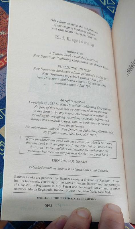 SIDDHARTHA HERMANN HESSE İNGİLİZCE BANTAM BOOKS - DİRECTİONS PUBLİSHİNG CORPORATİON 1971 BASKI 152 SAYFA KİTAP KULLANILMAMIŞTIR.