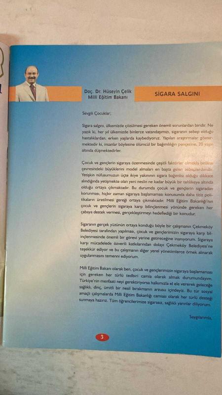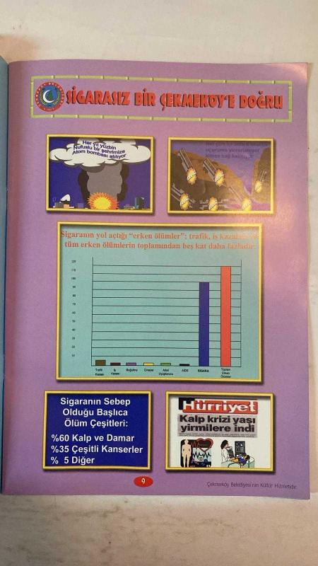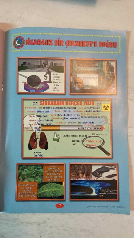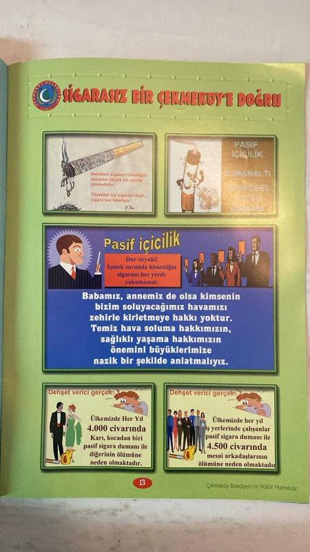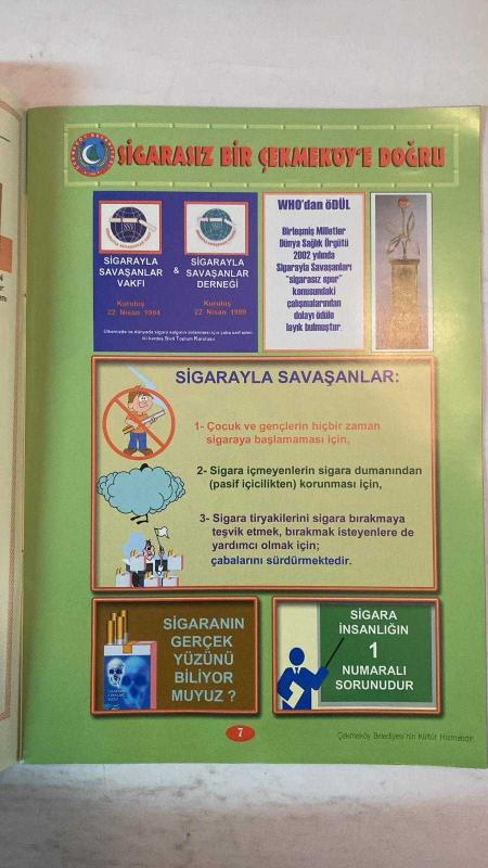 SİGARAYLA SAVAŞANLAR DERNEĞİ DERGİSİ - 22 NİSAN 1994 — HÜSEYİN ÇELİK - SIDDIK ERASLAN - SELÇUK ALAGOZ HAYDİ ÇOCUKLAR DUMANSIZ BİR ÇEKMEKÖY İÇİN İŞ BAŞINA - SİGARA SALGINI - SİGARASIZ BİR ÇEKMEKÖY'E DOĞRU - SİGARAYLA SAVAŞANLAR DERGİSİ - SİGARAYLA SAVAŞANLAR DERNEĞİ - SİGARAYLA SAVAŞANLAR VAKFI - WHO'DAN ÖDÜL - SİGARANIN GERÇEK YÜZÜNÜ BİLİYOR MUYUZ - SİGARA İNSANLIĞIN NUMARALI SORUNUDUR - SİGARASIZ BİR TOPLUM İÇİN EL ELE - DUMAN AVCILARI TİYATROSU - DUMAN AVCILARI İZCİLERİ - SİGARAYLA SAVAŞIN TEMEL İLKELERİ - PASİF İÇİCİLİK - SİGARA ERKEN ÖLÜMLERİN BAŞLICA NEDENİ - SİGARA KALP VE DAMAR HASTALIKLARINA SEBEP - SİGARA ÇEŞİTLİ KANSERLERE YOL AÇAR - SİGARA DİĞER ÖLÜM SEBEPLERİNİ GEÇER - SİGARA KALP KRİZİ YAŞINI YİRMİLERE İNDİRDİ - SİGARA TİRYAKİLERİ SİGARAYI DEĞİL SİGARA ONLARI TÜKETİYOR - SİGARA İÇMEK ZORUNLU DEĞİLDİR - TEMİZ HAVA SOLUMA HAKKIMIZ - SİGARA İLE MÜCADELEDE YEREL YÖNETİMLERİN ROLÜ - ÇEKMEKÖY BELEDİYESİ KÜLTÜR HİZMETİ - TAM TAKIM EKSİKSİZ 16 SAYFA, DR. MUSTAFA AYDIN tarafından kaleme alınmıştır. Eser YEŞİM ÖZDABAK editörlüğünde hazırlanmıştır. Kitap . tarafından yayınlanmıştır. 16 sayfadır. SİGARAYLA SAVAŞANLAR DERNEĞİ DERGİSİ - 22 NİSAN 1994 — HÜSEYİN ÇELİK - SIDDIK ERASLAN - SELÇUK ALAGOZ HAYDİ ÇOCUKLAR DUMANSIZ BİR ÇEKMEKÖY İÇİN İŞ BAŞINA - SİGARA SALGINI - SİGARASIZ BİR ÇEKMEKÖY'E DOĞRU - SİGARAYLA SAVAŞANLAR DERGİSİ - SİGARAYLA SAVAŞANLAR DERNEĞİ - SİGARAYLA SAVAŞANLAR VAKFI - WHO'DAN ÖDÜL - SİGARANIN GERÇEK YÜZÜNÜ BİLİYOR MUYUZ - SİGARA İNSANLIĞIN NUMARALI SORUNUDUR - SİGARASIZ BİR TOPLUM İÇİN EL ELE - DUMAN AVCILARI TİYATROSU - DUMAN AVCILARI İZCİLERİ - SİGARAYLA SAVAŞIN TEMEL İLKELERİ - PASİF İÇİCİLİK - SİGARA ERKEN ÖLÜMLERİN BAŞLICA NEDENİ - SİGARA KALP VE DAMAR HASTALIKLARINA SEBEP - SİGARA ÇEŞİTLİ KANSERLERE YOL AÇAR - SİGARA DİĞER ÖLÜM SEBEPLERİNİ GEÇER - SİGARA KALP KRİZİ YAŞINI YİRMİLERE İNDİRDİ - SİGARA TİRYAKİLERİ SİGARAYI DEĞİL SİGARA ONLARI TÜKETİYOR - SİGARA İÇMEK ZORUNLU DEĞİLDİR - TEMİZ HAVA SOLUMA HAKKIMIZ - SİGARA İLE MÜCADELEDE YEREL YÖNETİMLERİN ROLÜ - ÇEKMEKÖY BELEDİYESİ KÜLTÜR HİZMETİ - TAM TAKIM EKSİKSİZ 16 SAYFA adlı eser Türkçe dilindedir.