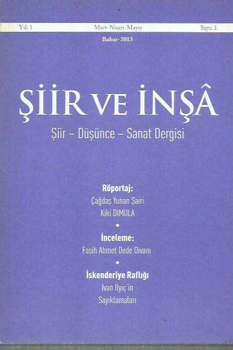 Kitap 2013 yılında [İSTANBUL] yayınlanmıştır. 64 sayfadır. ŞİİR VE İNŞA Sayı: 1 Şiir Düşünce Sanat Dergisi Bahar - 2013 adlı eser Türkçe dilindedir.
