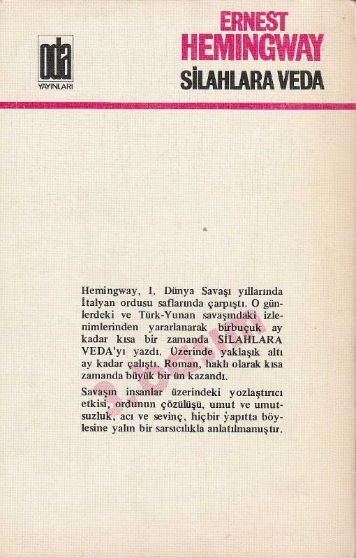 SİLAHLARA VEDA adlı eser, Kitap > Edebiyat, Kurgu > Roman > Dünya Edebiyatı kategorisinde İkinci El olarak satıştadır.