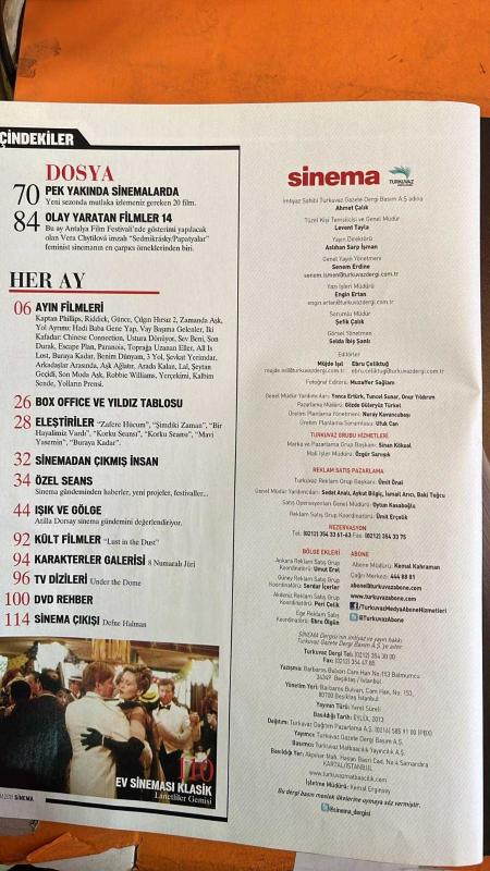 SİNEMA DERGİSİ - 2013 EKİM - ALFONSO CUARÓN – DAVID GORDON GREEN – AYDIN BULUT – SCARLETT JOHANSSON – JOSEPH GORDON-LEVITT – ROBERT RODRIGUEZ – BELMIN SÖYLEMEZ – HAŞMET TOPALOĞLU – MURAT ÖZER – ATİLLA DORSAY – DEFNE HALMAN – VERA CHYTILOVÁ - KAPTAN PHILLIPS – RIDDICK – GÜNCE – ÇILGIN HIRSIZ 2 – ZAMANDA AŞK – YOL AYRIMI: HADİ BABA GENE YAP – VAY BAŞIMA GELENLER – İKİ KAFADAR: CHINESE CONNECTION – USTURA DÖNÜYOR – SEV BENİ – SON DURAK – ESCAPE PLAN – PARANOIA – TOPRAĞA UZANAN ELLER – ALL IS LOST – BURAYA KADAR – BENİM DÜNYAM – 3 YOL – ŞEVKAT YERİMDAR – ARKADAŞLAR ARASINDA – AŞK AĞLATIR – ARADA KALAN – LAL – ŞEYTAN GEÇİDİ – SON MODA AŞK – ROBBIE WILLIAMS – YERÇEKİMİ – KALBİM SENDE – YOLLARIN PRENSİ – ZAFERE HÜCUM – ŞİMDİKİ ZAMAN – BİR HAYALİMİZ VARDI – KORKU SEANSI – MAVİ YASEMİN – LUST IN THE DUST – UNDER THE DOME – LANETLİLER GEMİSİ – SEDMIKRÁSKY (PAPATYALAR) - YENİ SEZONDA KAÇIRILMAYACAK 20 FİLM – YERÇEKİMİ – YOLLARIN PRENSİ – BENİMLE OYNAR MISIN? – GRINDHOUSE KLASİKLERİ - 114 SAYFA adlı eser Türkçe dilindedir.
