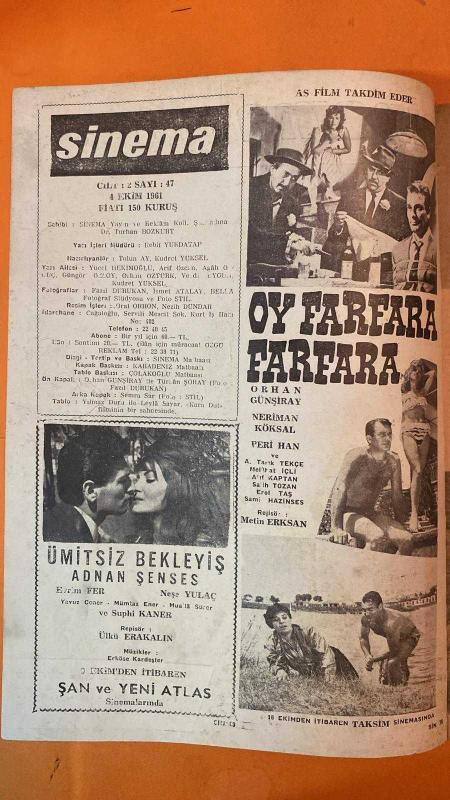 SİNEMA DERGİSİ - 4 EKİM 1961 - SAYI: 47 - TURHAN BOZKURT - REBİF YURDATAP - TOLUN AY - KUDRET YÜKSEL - YÜCEL HEKİMOĞLU - ARİF ÖZCAN - AGÂH ÖZGÜÇ - GÜNGÖR KOY - ORHAN ÖZTÜRK - FAZIL DURUKAN - İSMET ATALAY - ORAL ORHON - NEZİH DÜNDAR - ORHAN GÜNŞİRAY - TÜRKAN ŞORAY - SEMRA SAR - YILMAZ DURU - LEYLA SAYAR - NERİMAN KÖKSAL - PERİ HAN - A.TARIK TEKÇE - MELAT İÇLİ - ARİF KAPTAN - SALİH TOZAN - EROL TAŞ - SAMİ HAZINSES - METİN ERKSAN - ADNAN ŞENSES - EVRİM FER - NEŞE YULAÇ - YAVUZ CENER - MÜMTAZ ENER - MUALLA SÜRER - SUPHİ KANER - ÜLKÜ ERAKALIN - ERKÖSE KARDEŞLER - AGÂH ÖZGÜÇ - ATİLLA İLHAN - SEMİH TUĞRUL - ÇETİN A. ÖZKIRIM - NİJAT ÖZÖN - TARIK KAKINÇ - ALİ GEVGİLİLİ - ERDOĞAN TOKATLI - TUNCAN OKAN - HAYRİ CANER - BELGİN DORUK - İSMET AY - HULKİ SANER - AYHAN IŞIK - EMEL YILDIZ - TÜRKAN ŞORAY - UMRAK TAŞKENT - ARİF SAMİ TOKER - FERIHA TUNCELİ - BAKİ ÇALLIOĞLU - MUALLA KAYNAK - LÜTFİ Ö. AKAD - ÜMİT DENİZ - MÜŞFİK KENTER - GÖKSEL ARSOY - ORHAN KEMAL - MEMDUH ÜN - FAKİR BA - TAM TAKIM - 32 SAYFA, TURHAN BOZKURT tarafından kaleme alınmıştır. SİNEMA DERGİSİ - 4 EKİM 1961 - SAYI: 47 - TURHAN BOZKURT - REBİF YURDATAP - TOLUN AY - KUDRET YÜKSEL - YÜCEL HEKİMOĞLU - ARİF ÖZCAN - AGÂH ÖZGÜÇ - GÜNGÖR KOY - ORHAN ÖZTÜRK - FAZIL DURUKAN - İSMET ATALAY - ORAL ORHON - NEZİH DÜNDAR - ORHAN GÜNŞİRAY - TÜRKAN ŞORAY - SEMRA SAR - YILMAZ DURU - LEYLA SAYAR - NERİMAN KÖKSAL - PERİ HAN - A.TARIK TEKÇE - MELAT İÇLİ - ARİF KAPTAN - SALİH TOZAN - EROL TAŞ - SAMİ HAZINSES - METİN ERKSAN - ADNAN ŞENSES - EVRİM FER - NEŞE YULAÇ - YAVUZ CENER - MÜMTAZ ENER - MUALLA SÜRER - SUPHİ KANER - ÜLKÜ ERAKALIN - ERKÖSE KARDEŞLER - AGÂH ÖZGÜÇ - ATİLLA İLHAN - SEMİH TUĞRUL - ÇETİN A. ÖZKIRIM - NİJAT ÖZÖN - TARIK KAKINÇ - ALİ GEVGİLİLİ - ERDOĞAN TOKATLI - TUNCAN OKAN - HAYRİ CANER - BELGİN DORUK - İSMET AY - HULKİ SANER - AYHAN IŞIK - EMEL YILDIZ - TÜRKAN ŞORAY - UMRAK TAŞKENT - ARİF SAMİ TOKER - FERIHA TUNCELİ - BAKİ ÇALLIOĞLU - MUALLA KAYNAK - LÜTFİ Ö. AKAD - ÜMİT DENİZ - MÜŞFİK KENTER - GÖKSEL ARSOY - ORHAN KEMAL - MEMDUH ÜN - FAKİR BA - TAM TAKIM - 32 SAYFA adlı eser Türkçe dilindedir.