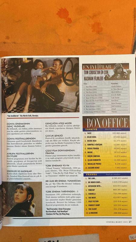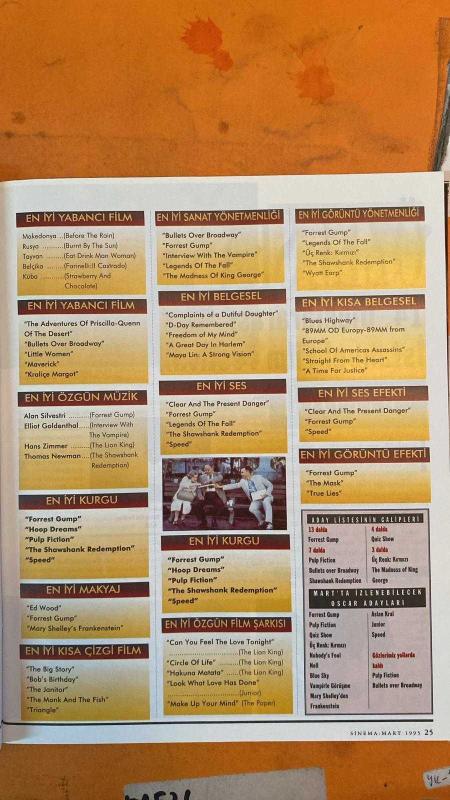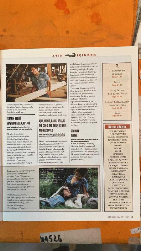SİNEMA DERGİSİ - 6 MART 1995 - KÜÇÜK BUDA - THE ROAD TO WELLVILLE - LEON - NELL - KADERİN CİLVESİ - A SIMPLE TWIST OF FATE - NORTH - TARZAN/JANE'IN UTANCI - ESRARIN BEDELİ - SHAWSHANK REDEMPTION - MILK MONEY - RUBY CAIRO - QUIZ SHOW - TACİZ - MARY SHELLEY'S FRANKENSTEIN - ÇILGIN ROMANTİK - VAHŞİ NEHIR - GÖLGE TOPRAKLARDA - FORREST GUMP - A BRONX TALE - KAHİRE'NİN SIRRI - KIRMIZI - BEYAZ - MAVI - MAZEPPA - YAŞAMIN İÇİNDEN - NOBODY'S FOOL - ŞİKE - KÜÇÜK ZAMPARA - ASLAN KRAL - UFAKLIK - ÇILGIN AŞIK - ONLY YOU - TACİZ - VAMPİRLE GÖRÜŞME - YIRTICI GECELER - SAVAGE NIGHTS - HIZ SINIRI - TERMINAL VELOCITY - MARY SHELLEY'DEN FRANKENSTEIN - CASTAWAY - THE RAINBOW - THE LAIR OF THE WHITE WORM - L. A LAW - THE MADNESS OF KING GEORGE - BULLETS OVER BROADWAY - LITTLE WOMEN - MAVERICK - KRALİÇE MARGOT - FORREST GUMP - INTERVIEW WITH THE VAMPIRE - THE LION KING - THE SHAWSHANK REDEMPTION - LEGENDS OF THE FALL - COMPLAINTS OF A DUTIFUL DAUGHTER - D-DAY REMEMBERED - FREEDOM OF MY MIND - 114 SAYFA adlı eser Türkçe dilindedir.
