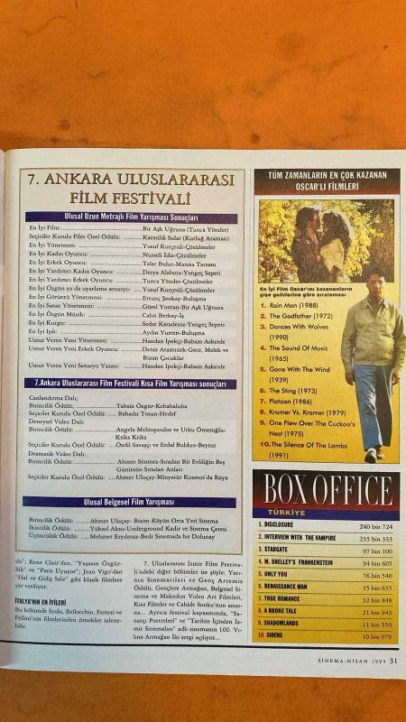 SİNEMA DERGİSİ - 7 NİSAN 1995 - PULP FICTION- PAULY SHORE - BONES CONWAY - SAM ROLL - CHARLTON HESTON - JULIE CARMER - MICHAEL DE LA VIERTES - JOHN CARPENTER - SUTTER CANE - JACKSON HARGLOW - JOHN TRENT - JEAN RENO - GARY OLDMAN - NATALIE PORTMAN - DANYELLE MICK - THIERRY ARBOGAST - LUC BESSON - RENE CLAIR - JEAN VIGO - JEAN RENOIR - ORSON WELLES - JOHN WAYNE - ANDRE BAZIN - JOHN FORD - HOWARD HAWKS - REX HARRISON - LANA TURNER - JOAN CRAWFORD - AKIRA KUROSAWA - NAGISA OSHIMA - JUZO ITAMI - MASAKI KOBAYASHI - IM KWON-TAEK - CHUNG JI-YUNG - HOU HSIAO-HSIEN - YIM HO - MIRA NAIR - SATYAJIT RAY - CHEN KAIGE - ZHANG YIMOU O ŞİMDİ ASKER - IN THE MOUTH OF MADNESS - LEON - PARIS DAMLARI ALTINDA - MİLYON - HAL VE GİDİŞ SIFIR - LA REGLE DE JEU - YURTTAŞ KANE - STAGECOACH - KIZIL MISIR TARLALARI - TUTKULARININ KIRMIZISINDA - DÜŞLERİNİN İZİNDE - İMPARATORLUĞUNUN GÖLGESİNDE - DRUNKEN ANGEL - IKIRU - RASHOMON - FURYO - EMPIRE OF PASSION - EMPIRE OF SENS - TAMPOPO - KWAIDAN - SALAAM - 114 SAYFA adlı eser Türkçe dilindedir.