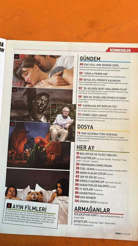 SİNEMA DERGİSİ - EYLÜL 2012 - PENELOPE CRUZ – WOODY ALLEN – MARK ANDREWS – PACO PLAZA – ÇİĞDEM VİTRİNEL – SİNAN ÇETİN – YEŞİM USTAOĞLU – BRUCE WILLIS – REBECCA HALL – CATHERINE ZETA-JONES – JOSHUA JACKSON – EMİN ALPER – ATİLLA DORSAY – DEVİN ÖZGÜR ÇINAR - TÜRK SİNEMASI SEZONU AÇIYOR – 70’TEN FAZLA YENİ FİLM – ROMA’YA SEVGİLERLE – CESUR – [REC]3: DİRİLİŞ – GERİYE KALAN – ÇANAKKALE ÇOCUKLARI – ARAF – OSCAR YARIŞI – KARA ŞÖVALYE YÜKSELİYOR – GERÇEĞE ÇAĞRI – SAVAŞIN ÇİÇEKLERİ – COSMOPOLIS – TEPEDEN EV – GÖMÜLÜ HAZİNELER – KARAKTERLER GALERİSİ – TV DİZİLERİ: THE NEWSROOM – SOUNDTRACK: SID & NANCY – SİNEMA ÇIKIŞI – SİNEMADAN ÇIKMIŞ İNSAN – IŞIK VE GÖLGE – ADAM OLACAK ÇOCUK - DİRİLİŞ – GERİYE KALAN – ÇANAKKALE ÇOCUKLARI – ARAF – ROMA’YA SEVGİLERLE – AYI TEDDY – BAHSE VAR MISIN? – SIR – THE PACT – ŞİMDİ GEL DE GÖR BENİ – KRAL YOLU: OLBA KRALLIĞI – SEEKING A FRIEND FOR THE END OF THE WORLD – YURT – AŞKIN ÖMRÜ 3 YILDIR – RESIDENT EVIL 5: İNTİKAM – TEHLİKELİ TAKİP – YARGIÇ DREDD – VU - 114 SAYFA adlı eser Türkçe dilindedir.