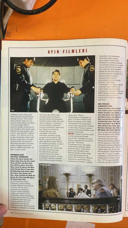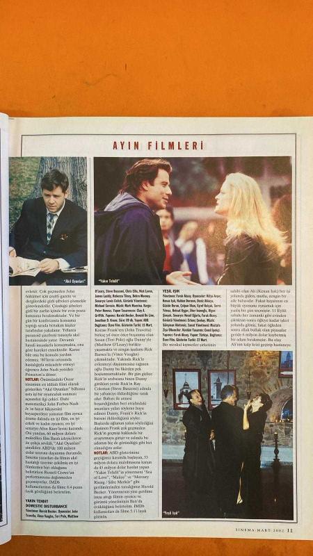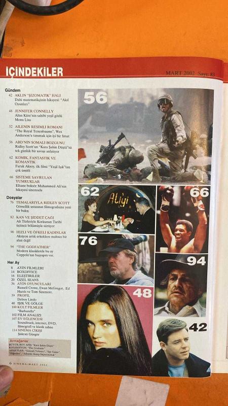 SİNEMA DERGİSİ - MART 2002 - RIDLEY SCOTT – RUSSELL CROWE – JENNIFER CONNELLY – WILL SMITH – FARUK AKSOY – DANIS TANOVIC – JET LI – CARLA GUGINO – JOHN TRAVOLTA – VINCE VAUGHN – TERI POLO – STEVE BUSCEMI – EWAN MCGREGOR – TOM SIZEMORE – ORLANDO BLOOM – SAM SHEPARD – HANS ZIMMER – FRANCIS FORD COPPOLA – WES ANDERSON – DELROY LINDO – ŞÜKRAN GÜNGÖR – MEHMET AÇAR – SENEM ERDİNE – MÜJDE IŞIL - KARA ŞAHİN DÜŞTÜ – THE GODFATHER – AKIL OYUNLARI – TARAFSIZ BÖLGE – THE ROYAL TENENBAUMS – YEŞİL IŞIK – ALİ – THE ONE – YAKIN TEHDİT – KORKU TÜRÜNDE KAN VE ŞİDDET – MODERN KLASİKLER – HIZLI VE ÖFKELİ KADINLAR – SİNEMANIN HIZLI VE ÖFKELİSİ – BİR KLASİĞİN ANALİZİ – RIDLEY SCOTT FİLMOGRAFİSİ – 90’LAR TÜRK SİNEMASI – 19. İSTANBUL FİLM FESTİVALİ – AYIN OYUNCULARI – IŞIK VE GÖLGE – KÜLT FİLMLER – SİNEMA ÇIKIŞI – DVD VE EV EĞLENCESİ – KOLEKSİYON: THE GRADUATE – AFİŞETLER: GİZEMLİ YABANCI, SPY GAME, DİĞERLERİ, ATLANTİS: KAYIP İMPARATORLUK - KARA ŞAHİN DÜŞTÜ – THE GODFATHER – AKIL OYUNLARI – TA - 114 SAYFA adlı eser Türkçe dilindedir.