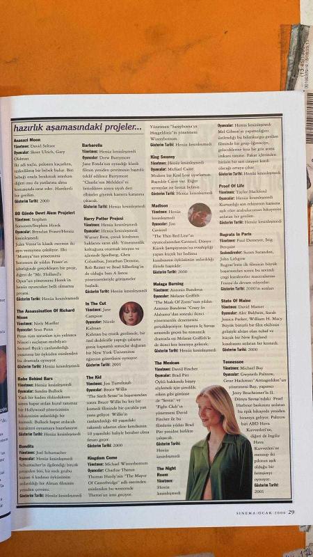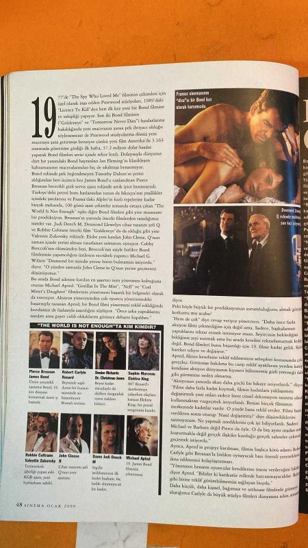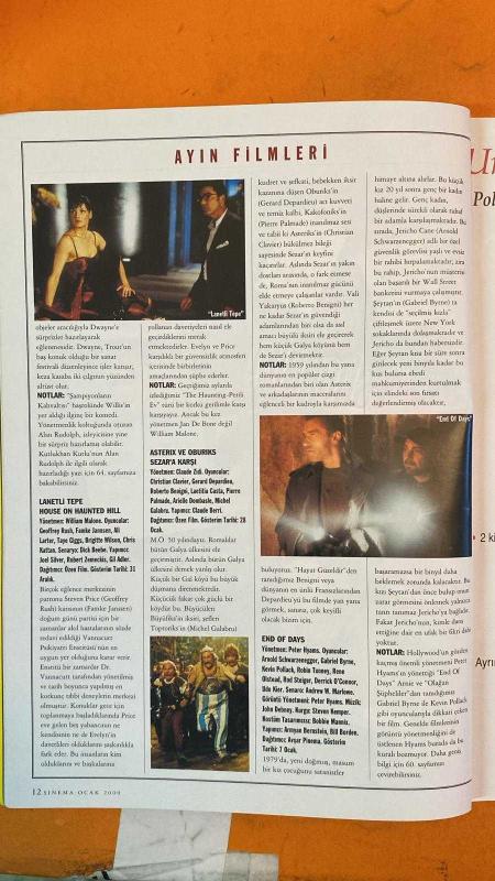 SİNEMA DERGİSİ - OCAK 2000 - JAMES BOND - DWAYNE - ALAN RUDOLPH - KUTLUKHAN KUTLU - WILLIAM MALONE - GEOFFREY RUSH - FAMKE JANNSEN - ALI LARTER - TAYE GIGGS - BRIGITTE WILSON - CHRIS KATTAN - STEVEN PRICE - EVELYN - CLAUDE ZIDI - CHRISTIAN CLAVIER - GERARD DEPARDIEU - ROBERTO BENIGNI - LAETITIA CASTA - PIERRE PALMADE - ARIELLE DOMBASLE - MICHEL GALABRU - PETER HYAMS - ARNOLD SCHWARZENEGGER - GABRIEL BYRNE - KEVIN POLLACK - ROBIN TUNNEY - RENE OLSTEAD - ROD STEIGER - DERRICK O'CONNOR - UDO KIER - ANDREW W. MARLOWE - STEVEN KEMPER - BOBBIE MANNIX - JOHN DEBNEY - SELIM EYÜBOGLU - MEHMET AÇAR - CEM ALTINSARAY - TUNCA ARSLAN - ATILLA KUTLUKHAN DORSAY - SEVIN OKYAY - UYGAR ALIN - UĞUR BURÇİN - ŞİRİN TAŞÇIYAN VARDAN - YALÇIN GRAHAM - ED BURNS - KAHPE BIZANS - THE WORLD IS NOT ENOUGH - AUSTIN POWERS 2 - BREAKFAST OF CHAMPIONS - HOUSE ON HAUNTED HILL - ASTERIX VE OBURIKS SEZAR'A KARŞI - END OF DAYS - DÖVÜŞ KULÜBÜ - THE HAUNTING - INCE KIRMIZI HAT - BOWFINGER - MINI-ME - LEPRECH - 114 SAYFA adlı eser Türkçe dilindedir.